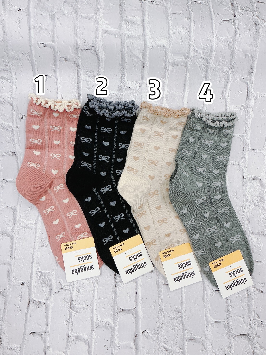 韓國製造~蛋糕邊排列蝴蝶結 二分之一襪