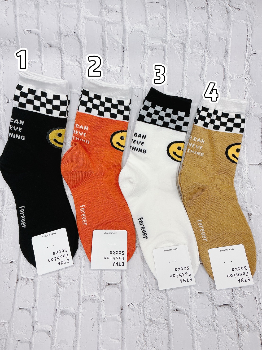 韓國製造~盤格襪頭笑臉 二分之一襪