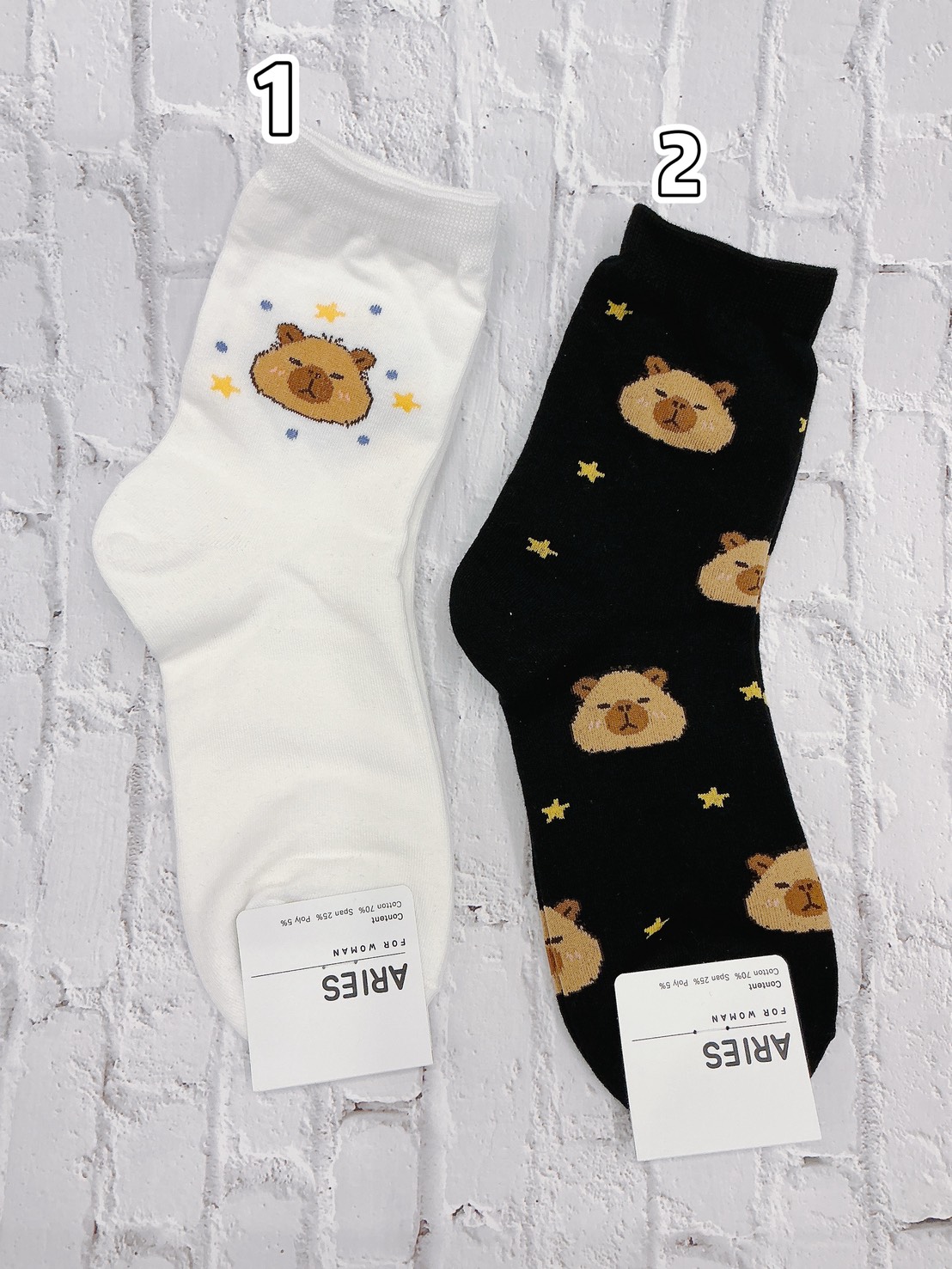 韓國製造~大頭水豚君 卡皮巴拉 二分之一襪