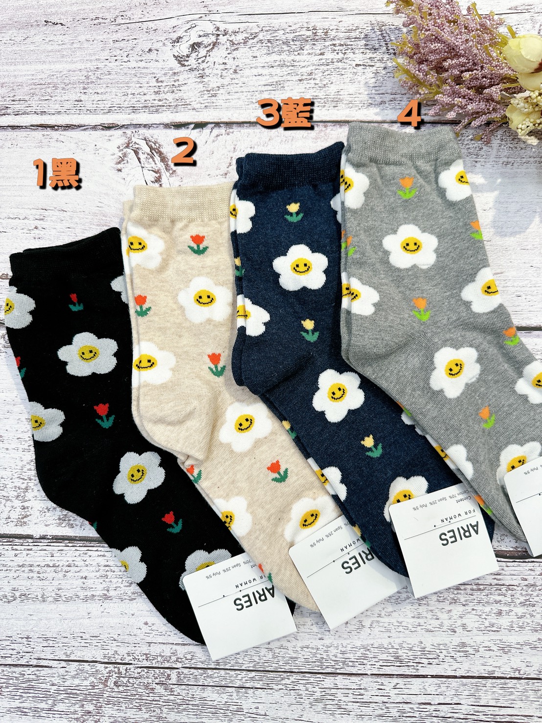 韓國製造~滿版笑臉太陽花 二分之一襪