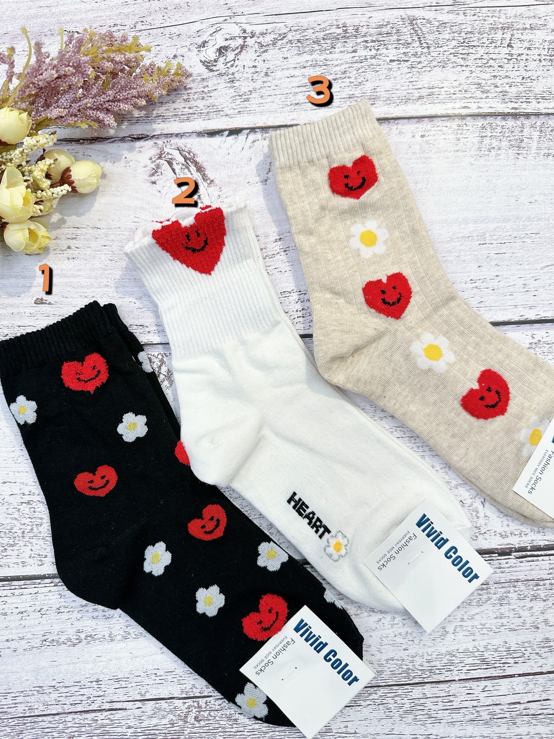 韓國製造~愛心笑臉 二分之一襪