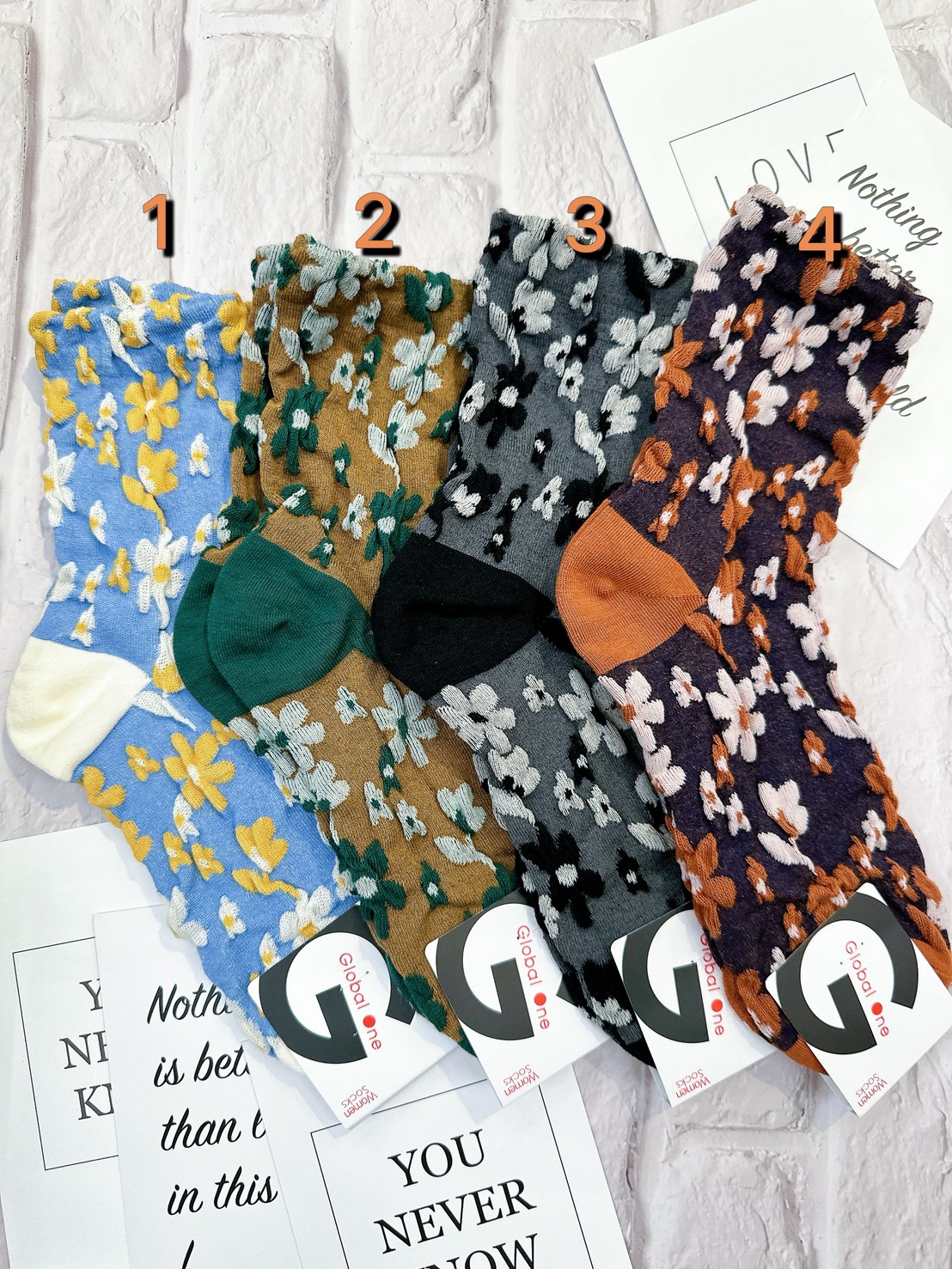 韓國製造~宮廷風滿版樹葉壓紋 二分之一襪