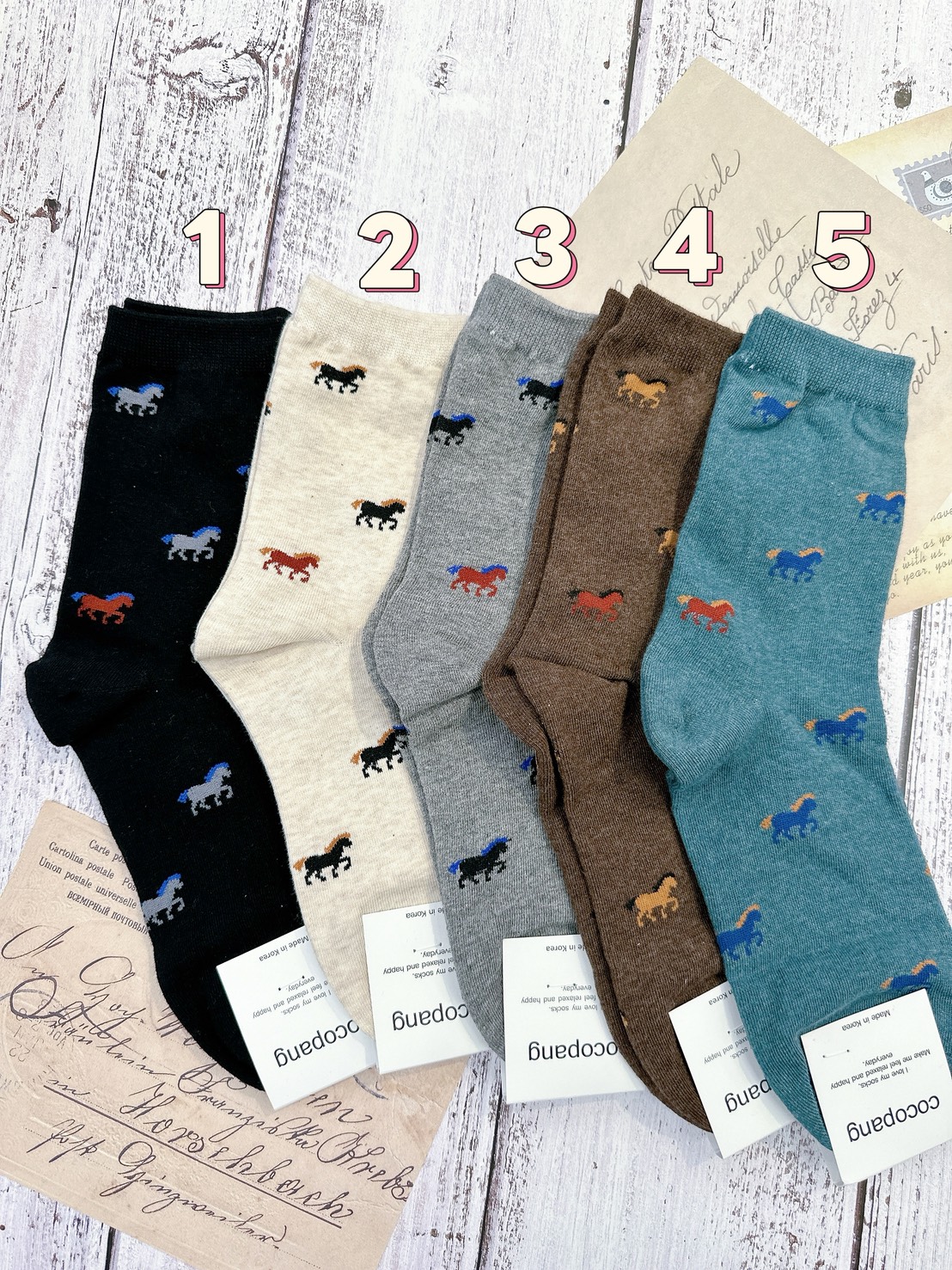 韓國製造~中性滿版俊馬 二分之一襪