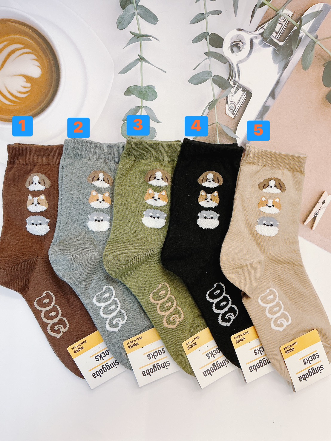韓國製造~絨毛可愛排列動物頭 二分之一襪
