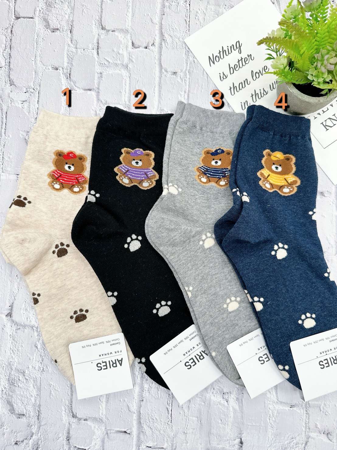 韓國製造~戴帽萌熊 二分之一襪