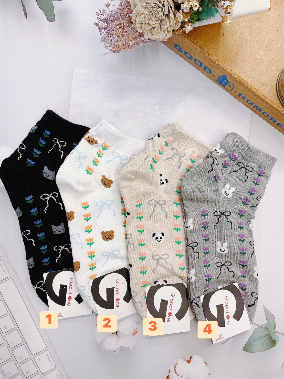 韓國製造~排列花草小動物 短襪