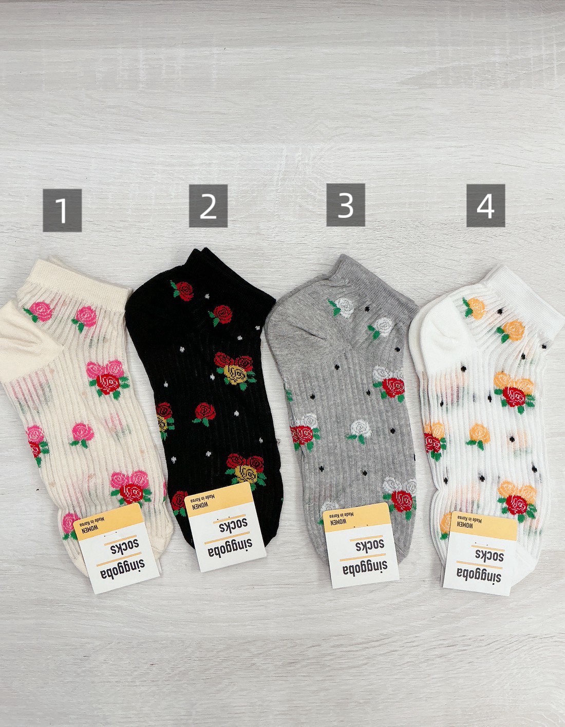 韓國製造~含苞花朵 短襪