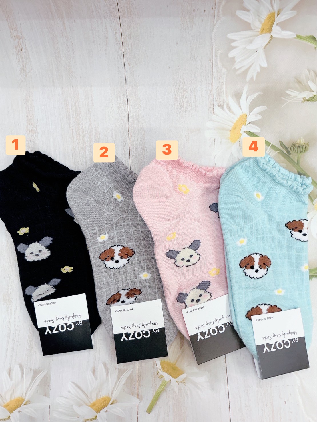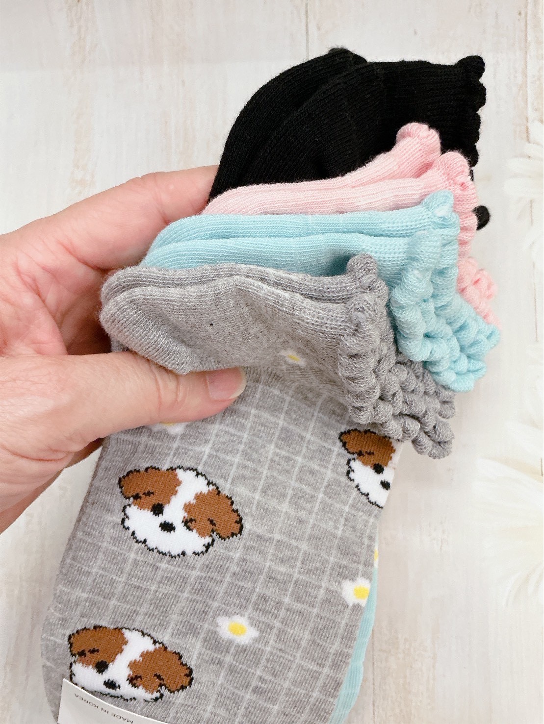 韓國製造~捲毛狗 船型襪