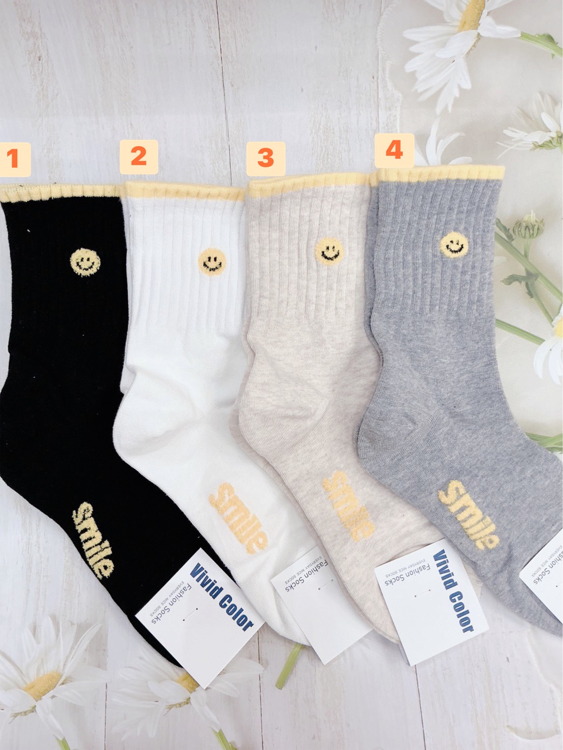 韓國製造~雙色襪頭笑臉 二分之一襪