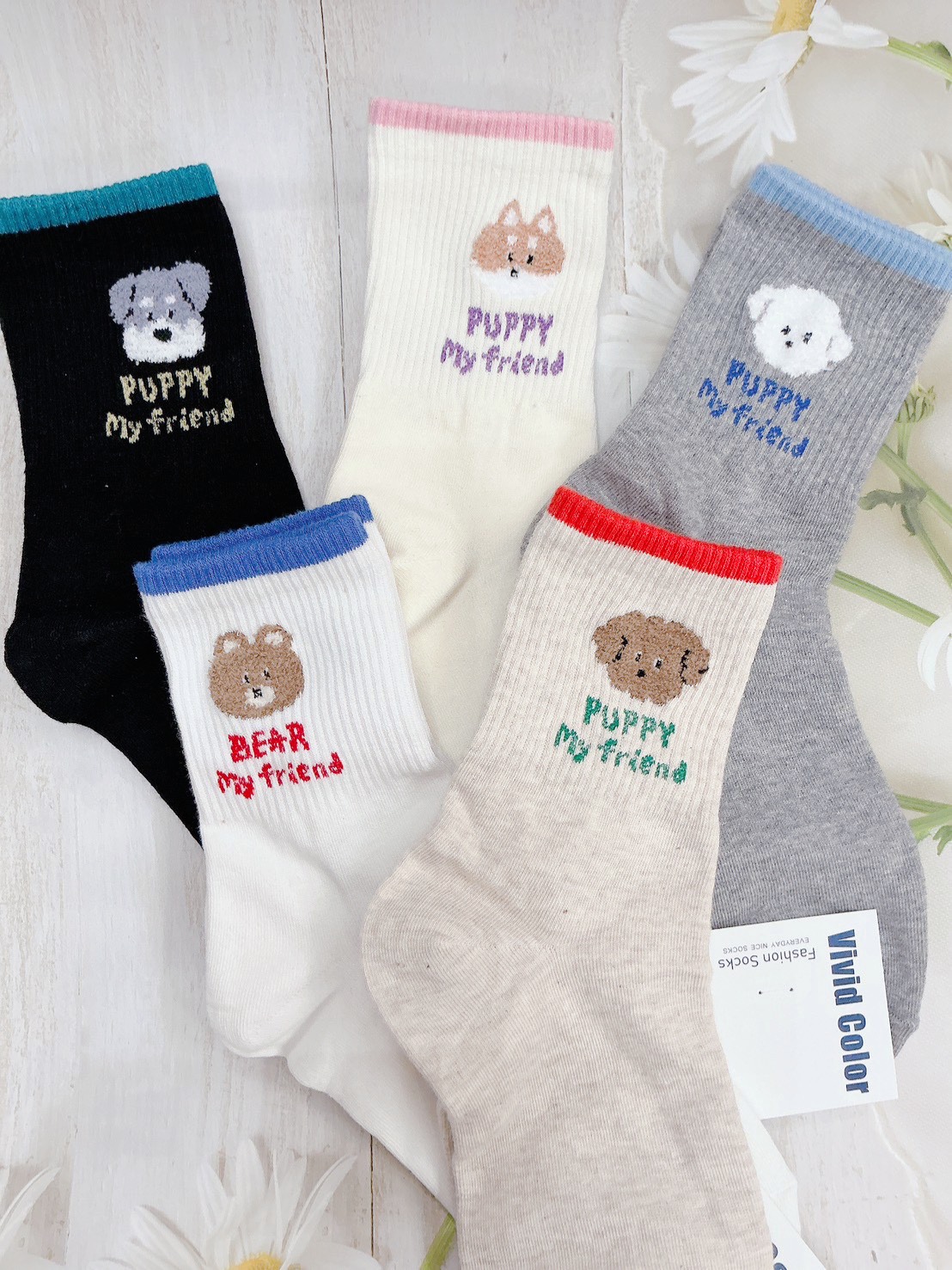 韓國製造~開心動物 直版襪