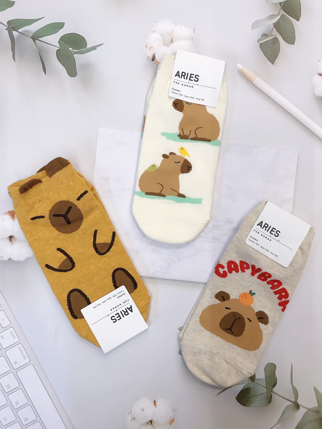 韓國製造~卡皮巴拉水豚 短襪