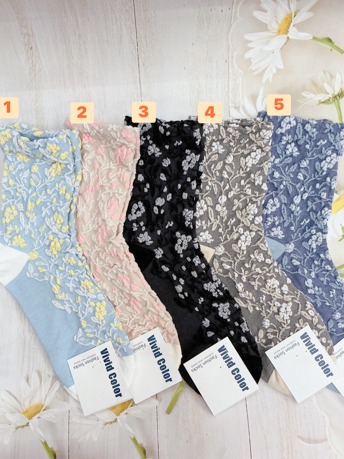 韓國製造~立體浮雕金絲花朵 二分之一襪