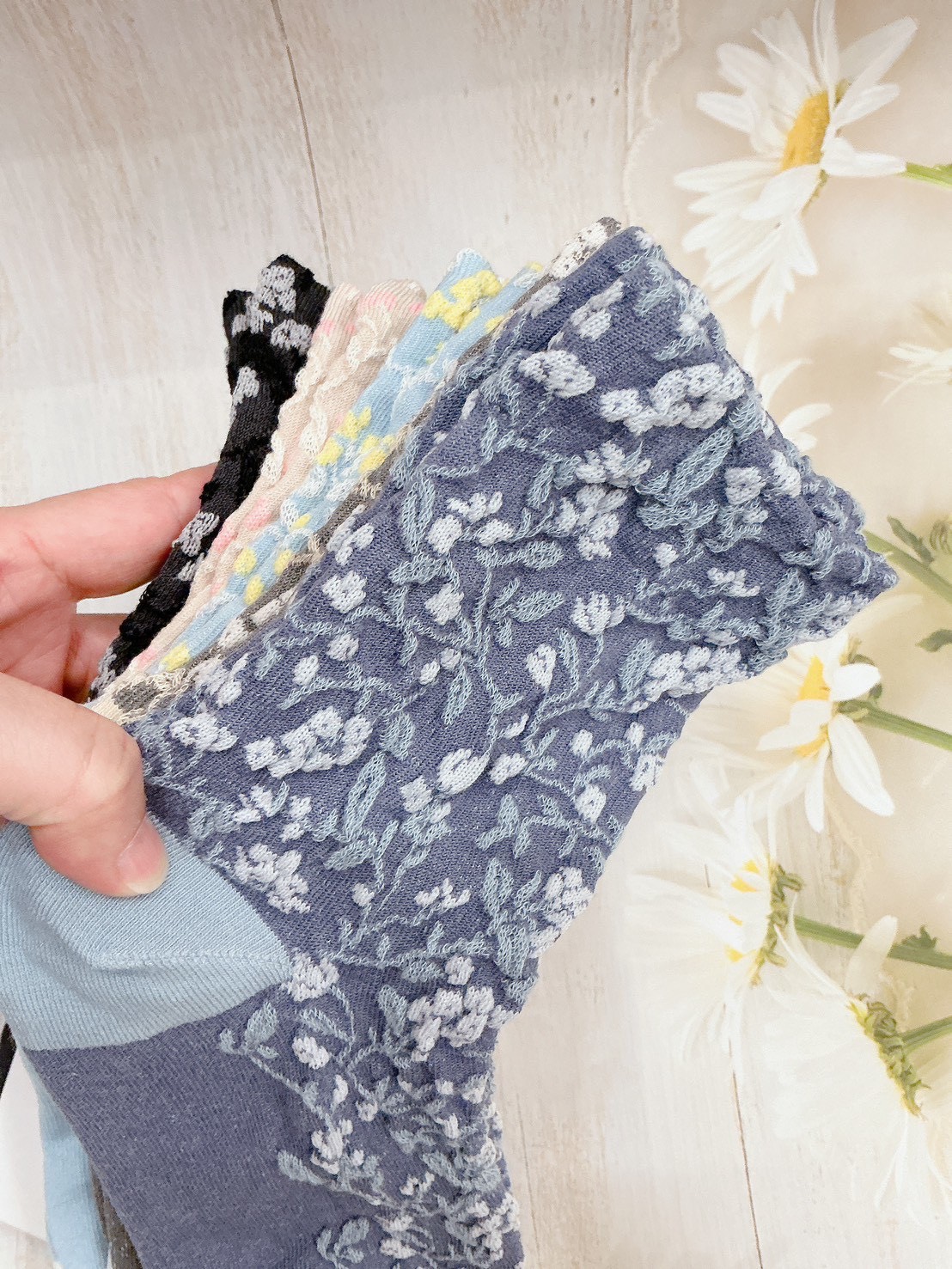 韓國製造~宮廷風滿版樹葉壓紋 二分之一襪