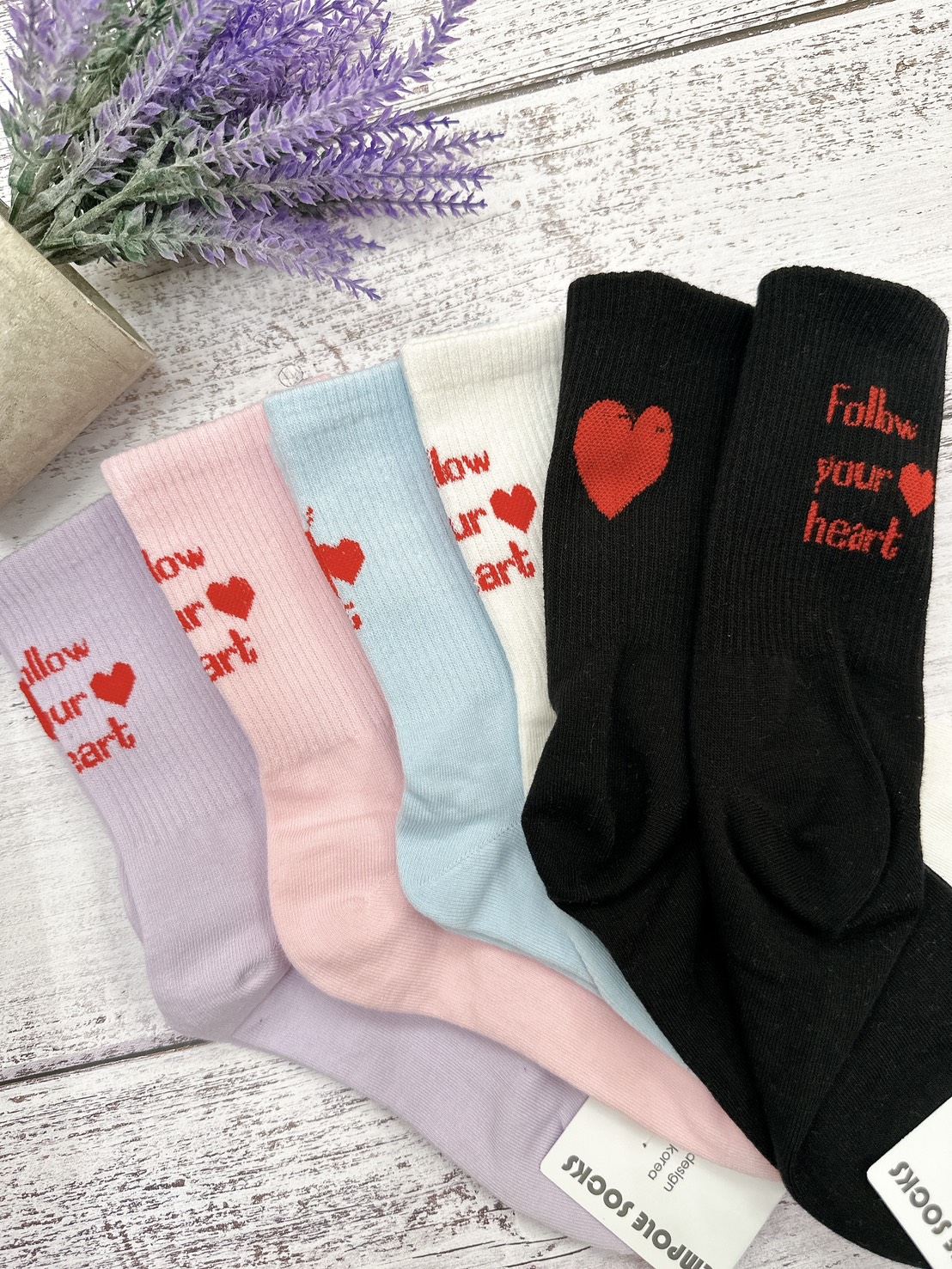 韓國製造~不對稱字母愛心 二分之一襪