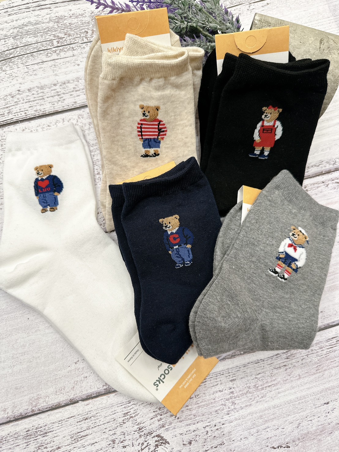 韓國製造~腳後跟貓咪熊頭笑臉 二分之一襪