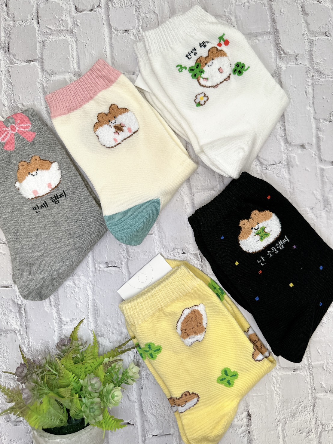 韓國製造~毛絨小倉鼠 二分之一襪