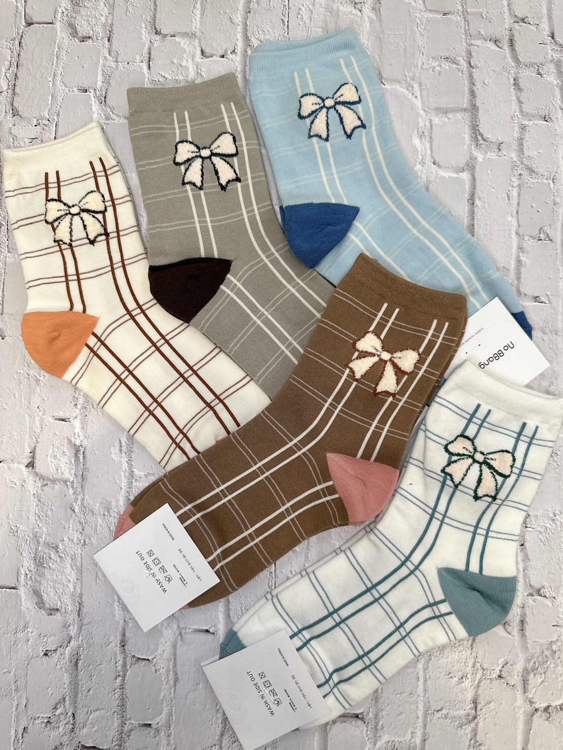 韓國製造~紅蝴蝶結小坐熊 二分之一襪