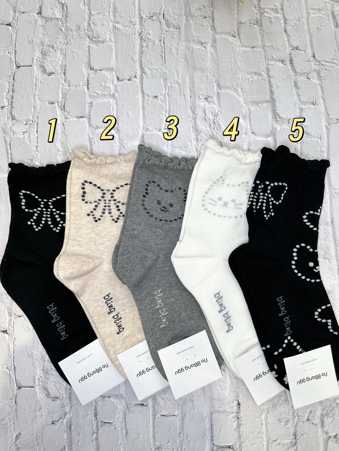 韓國製造~仿鑽蝴蝶結動物 二分之一襪