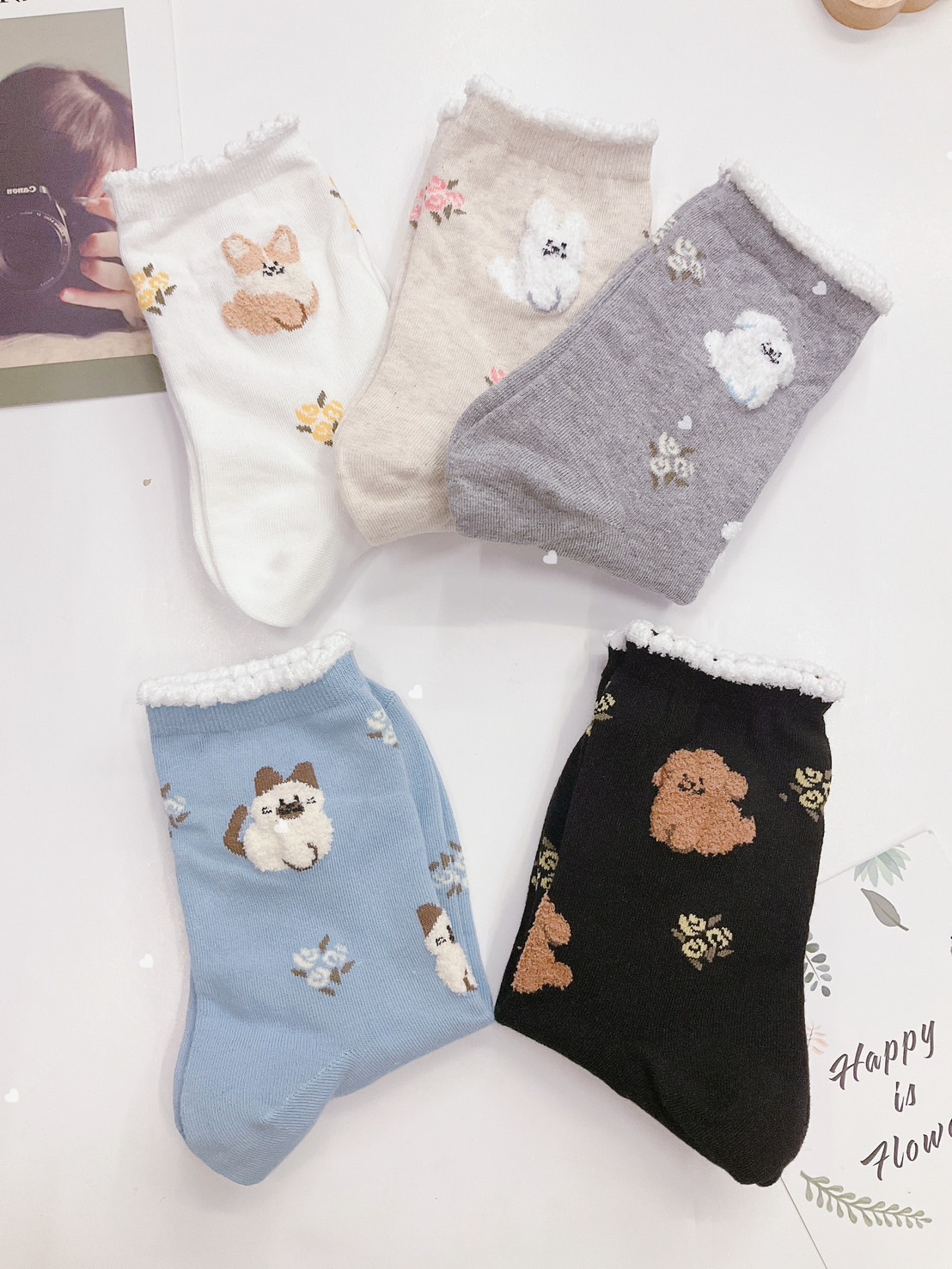 韓國製造~小毛邊滿版動物 二分之一襪