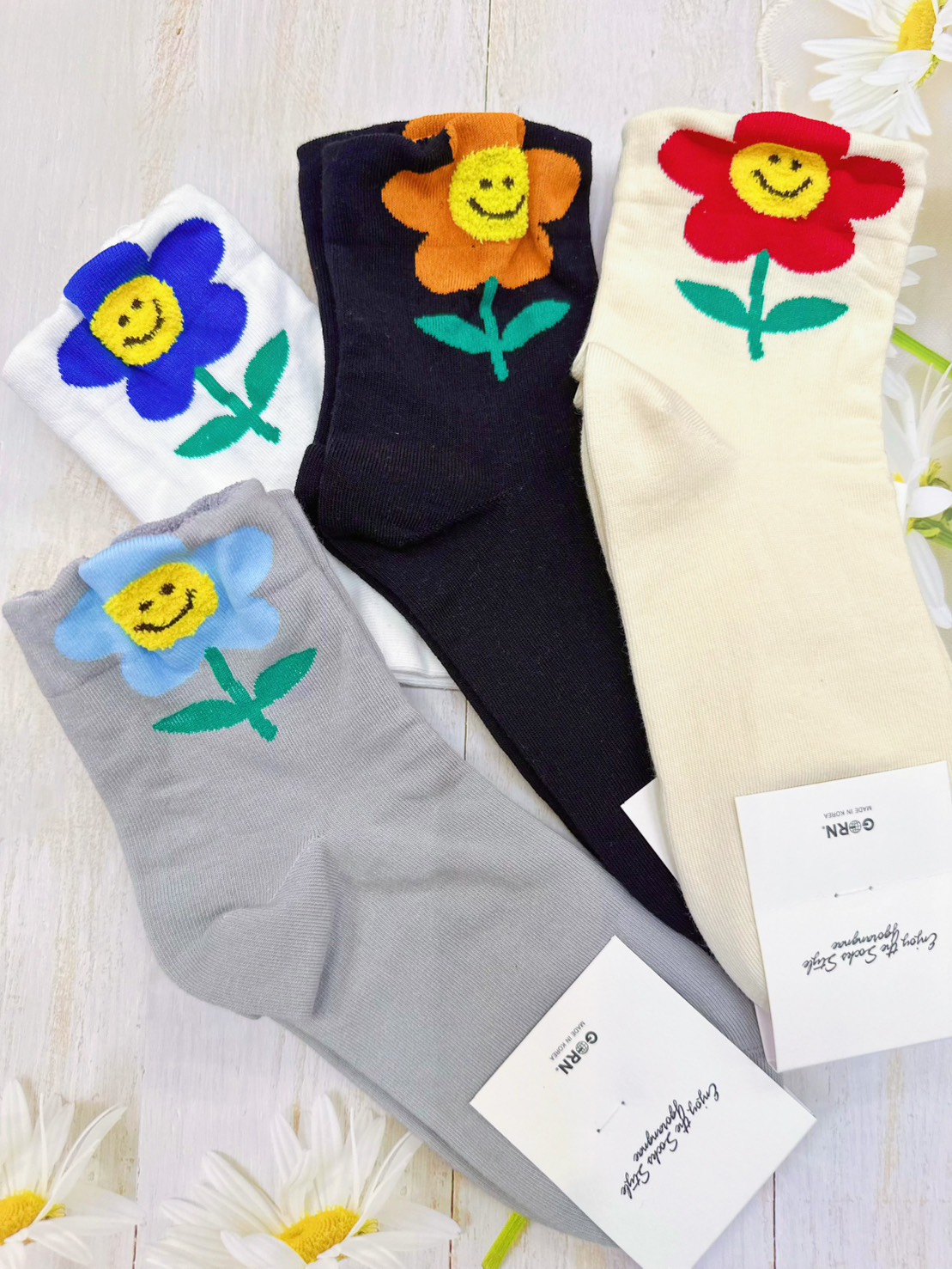 韓國製造~田園風立體浮雕小碎花 二分之一襪