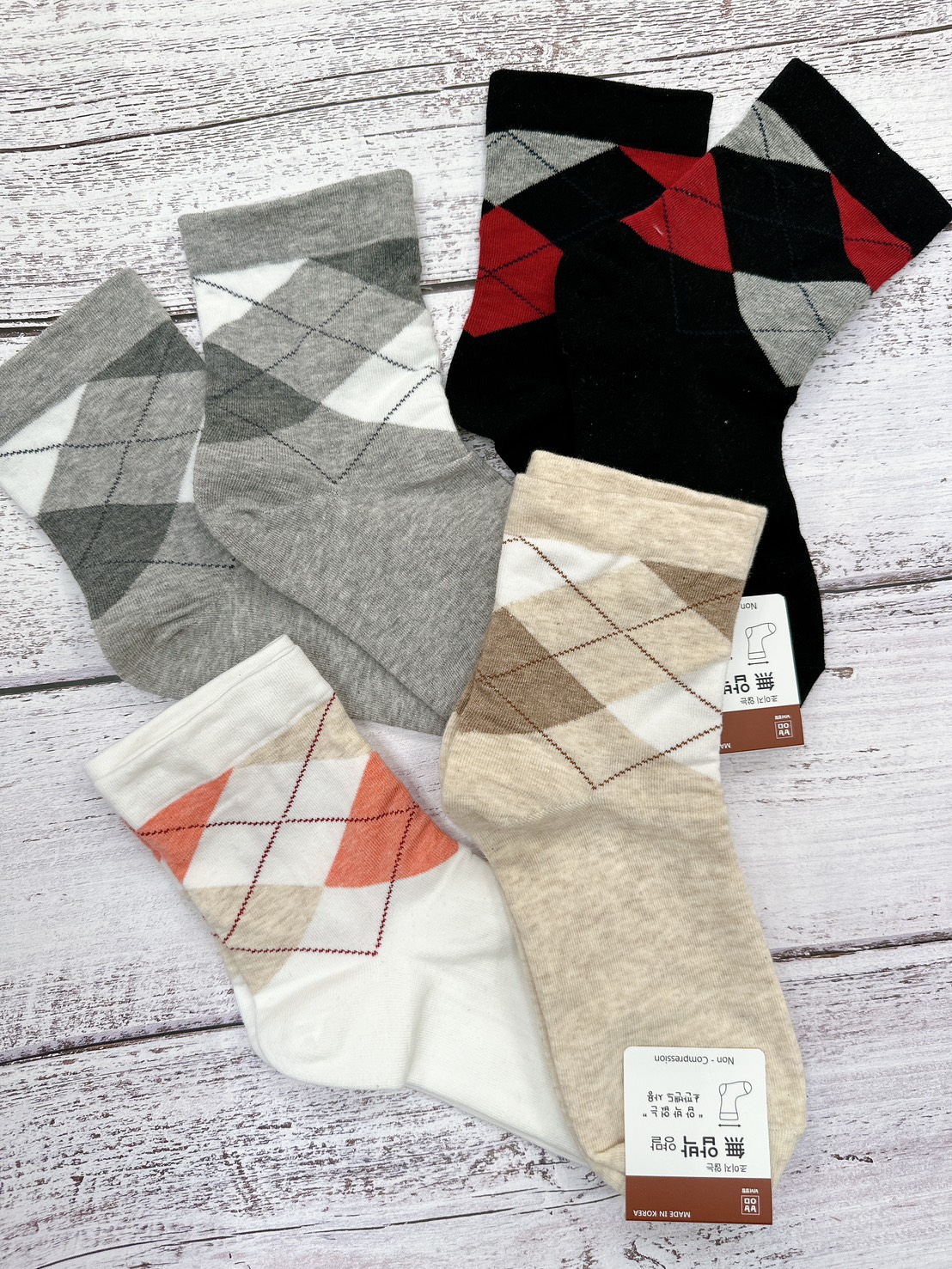韓國製造~捲捲邊雙色紋 二分之一襪