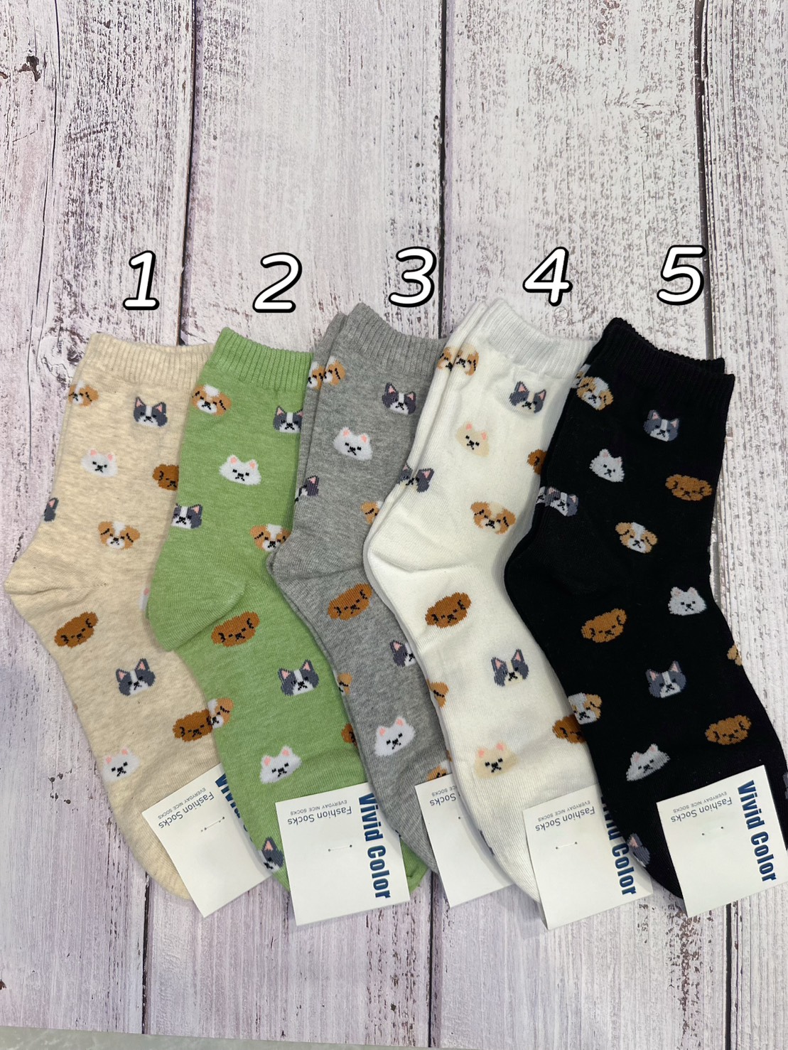 韓國製造~雙色皺皺小熊頭 二分之一襪