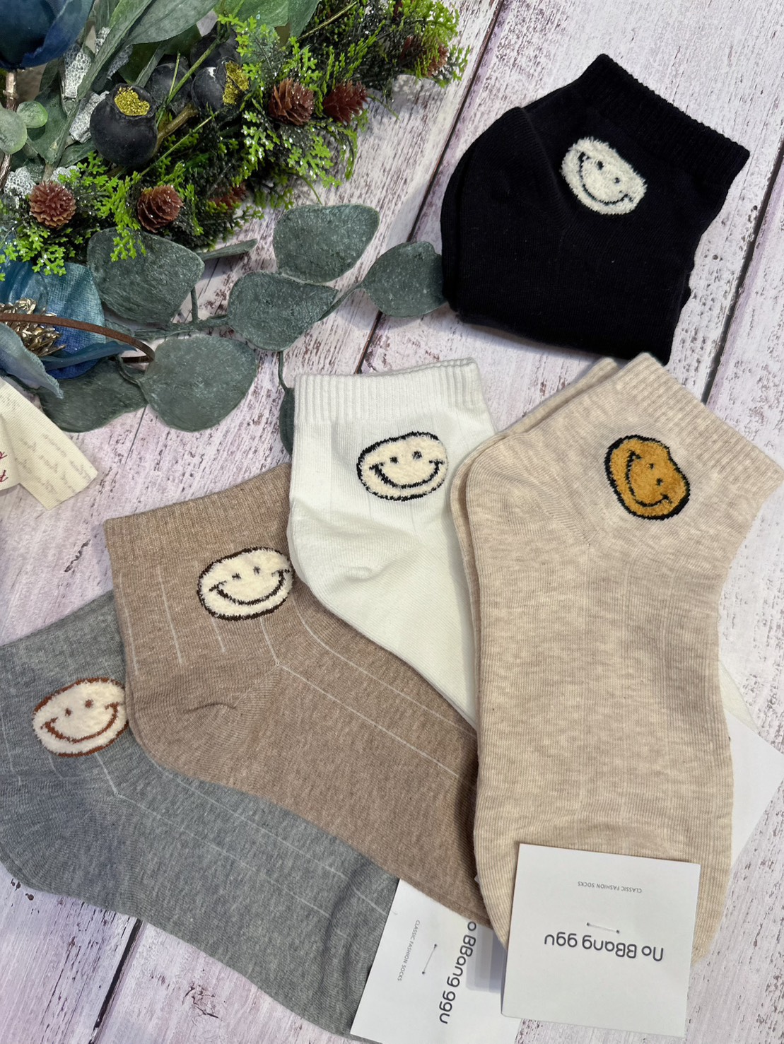 韓國製造~雙色襪頭笑臉 二分之一襪