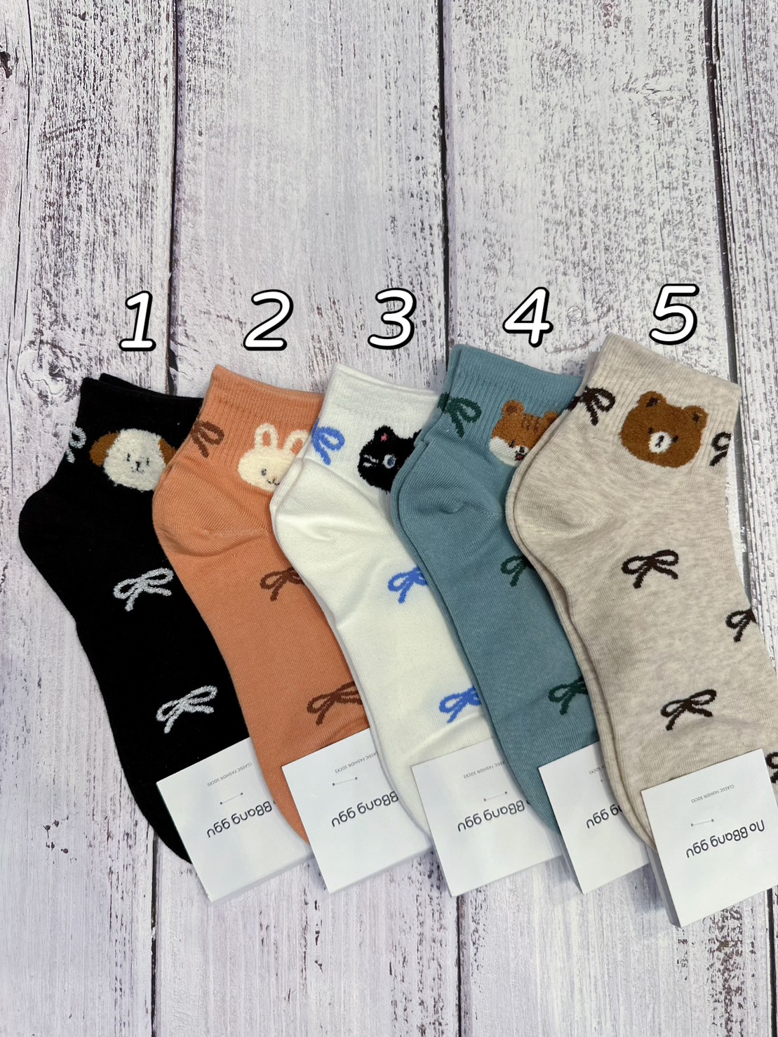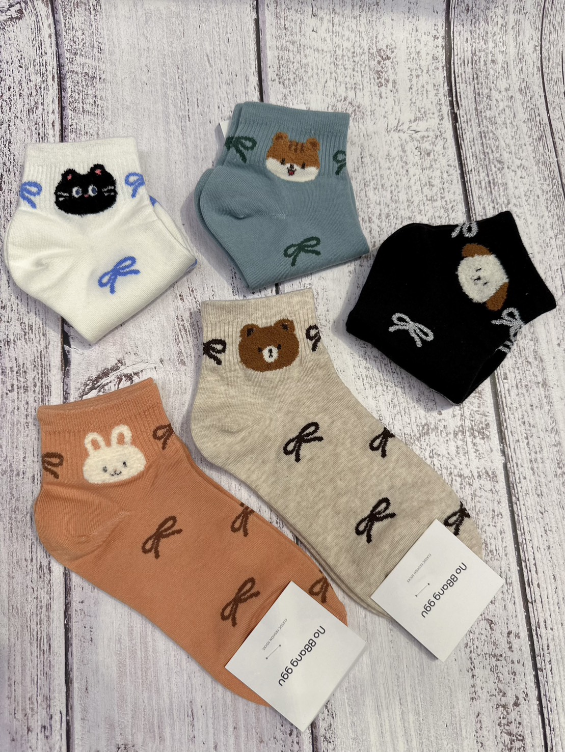 韓國製造~襪口動物蝴蝶結 短襪