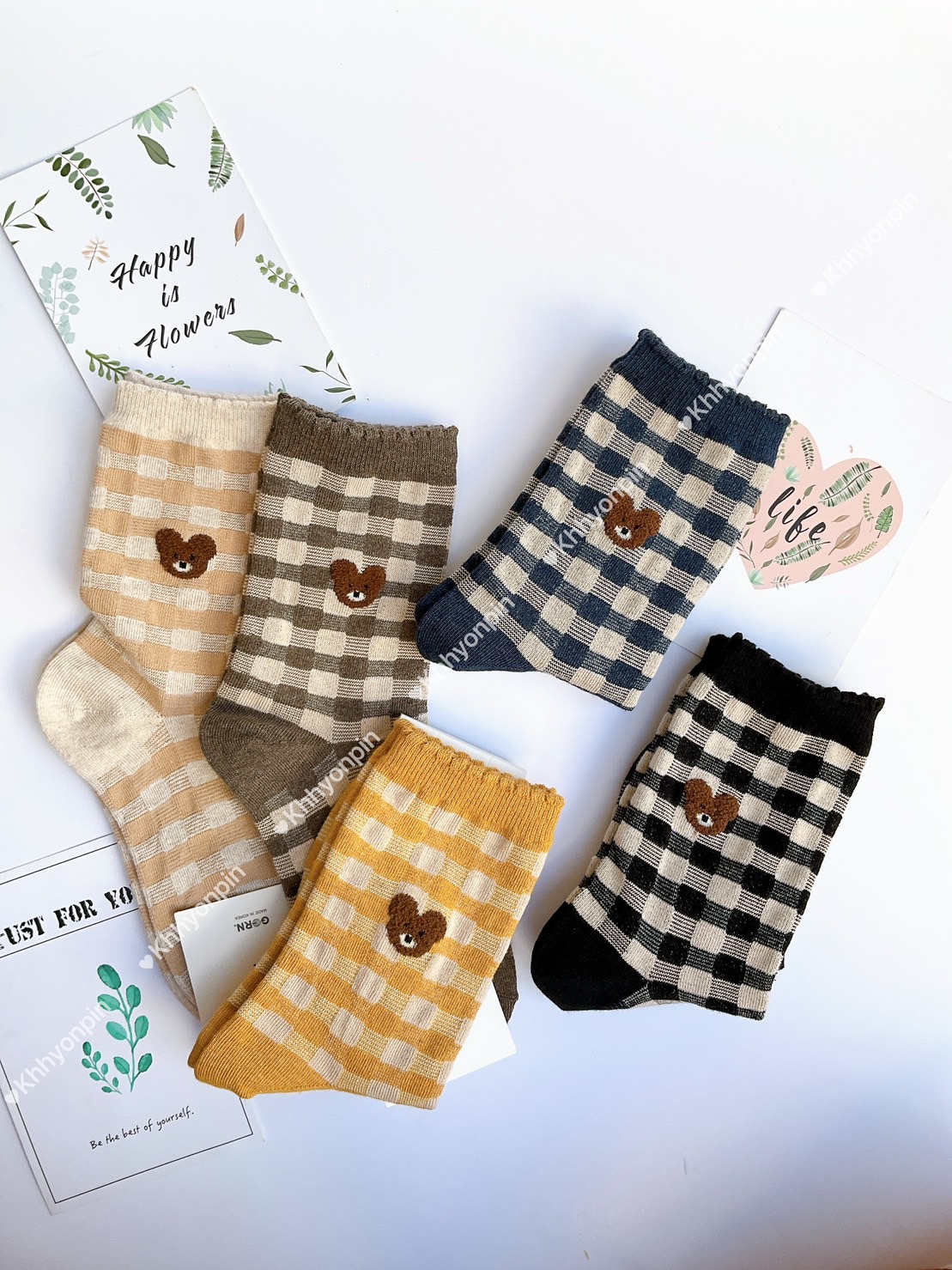韓國製造~可愛畫臉熊 短襪