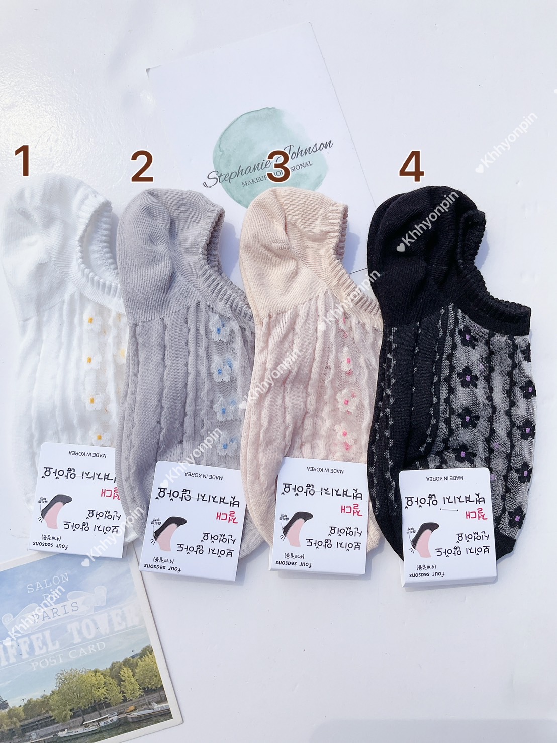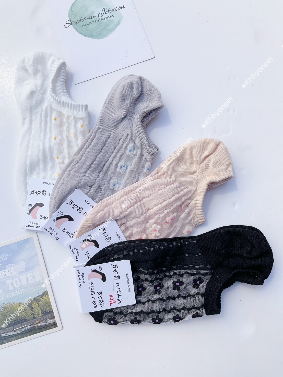 韓國製造~透膚圓小花隱形襪