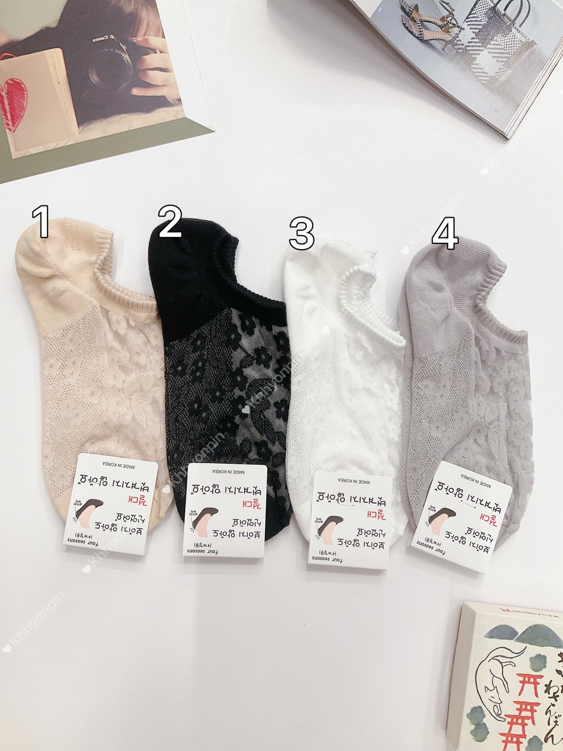韓國製造~襪口熊熊笑臉字母 二分之一襪