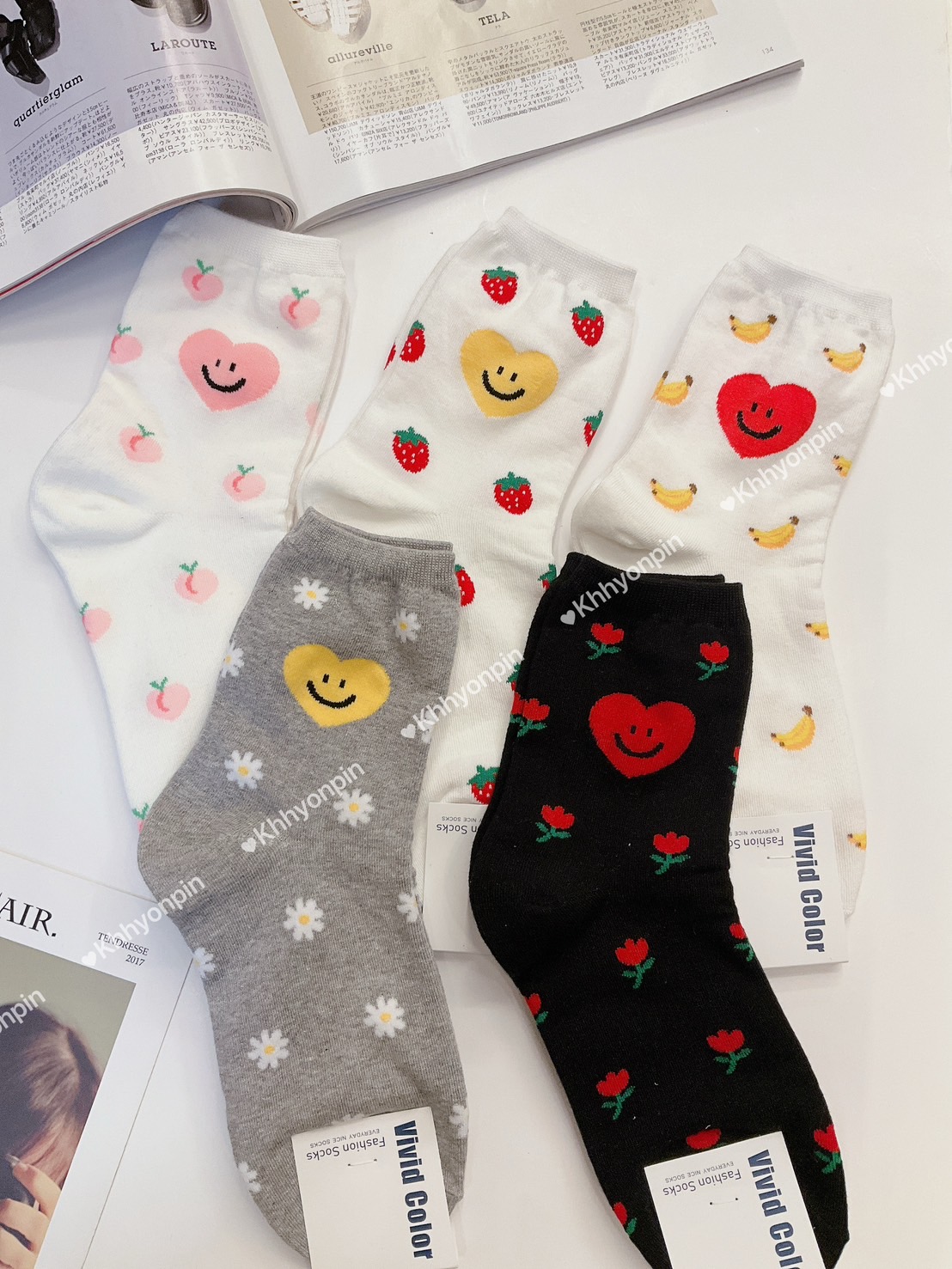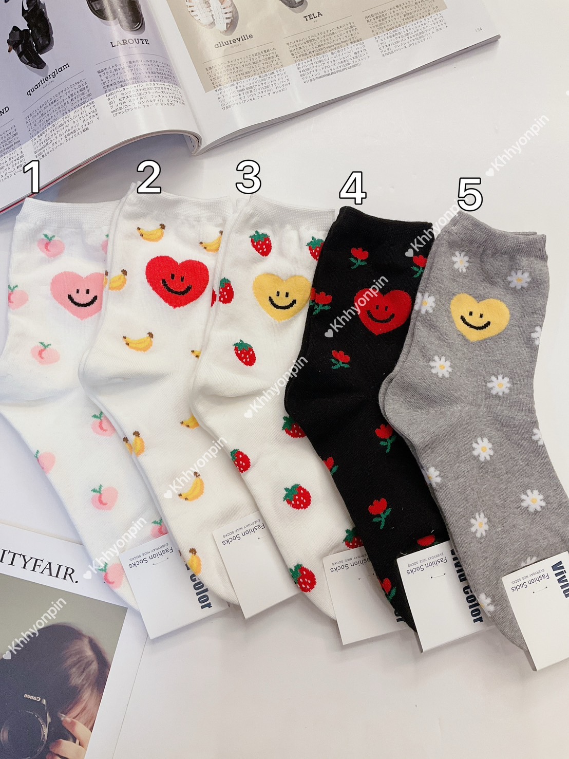 韓國製造~粉彩襪頭條紋笑臉 二分之一襪