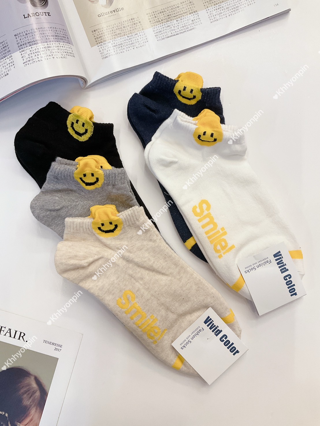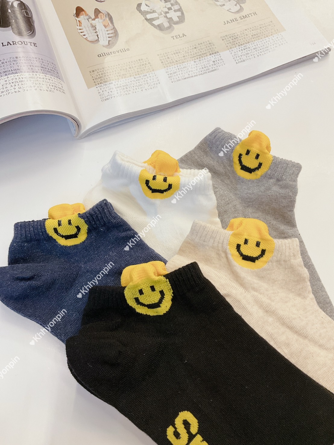 韓國製造~襪口立體笑臉 短襪