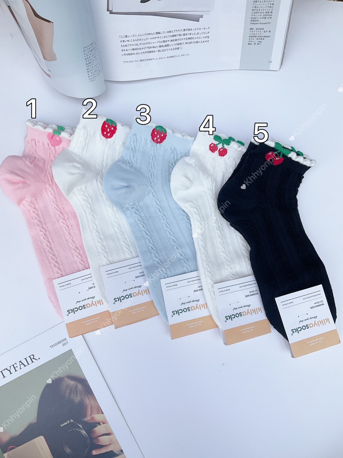 韓國製造~襪口滾邊草莓櫻桃 短襪