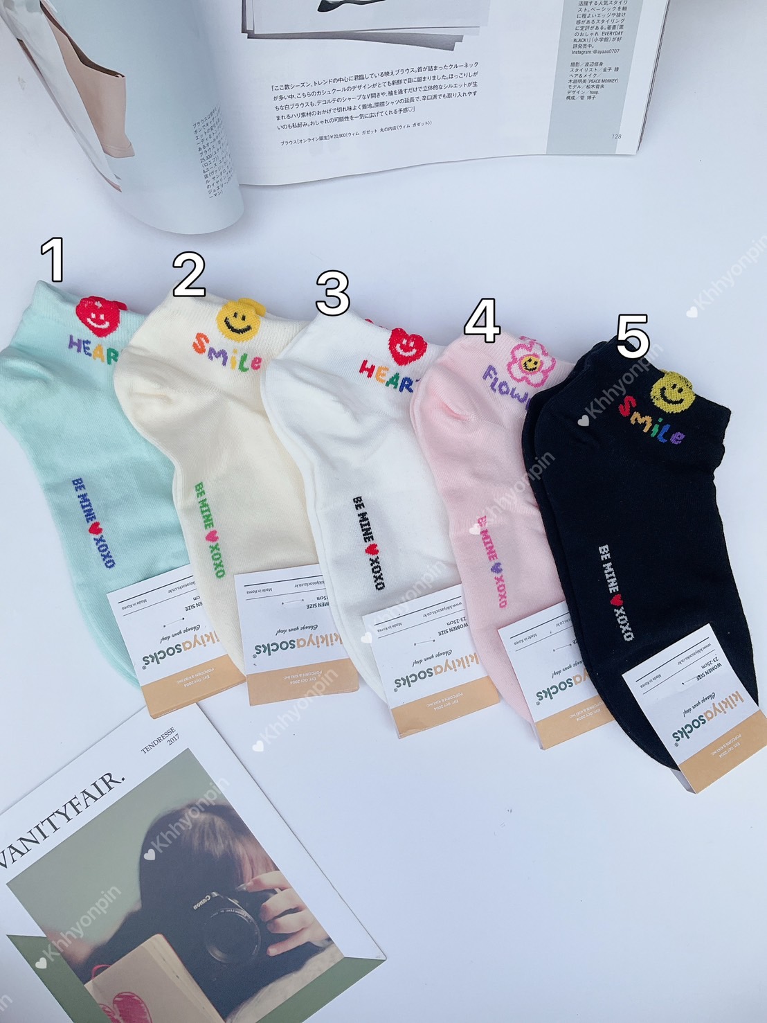 韓國製造~襪口愛心笑臉 短襪
