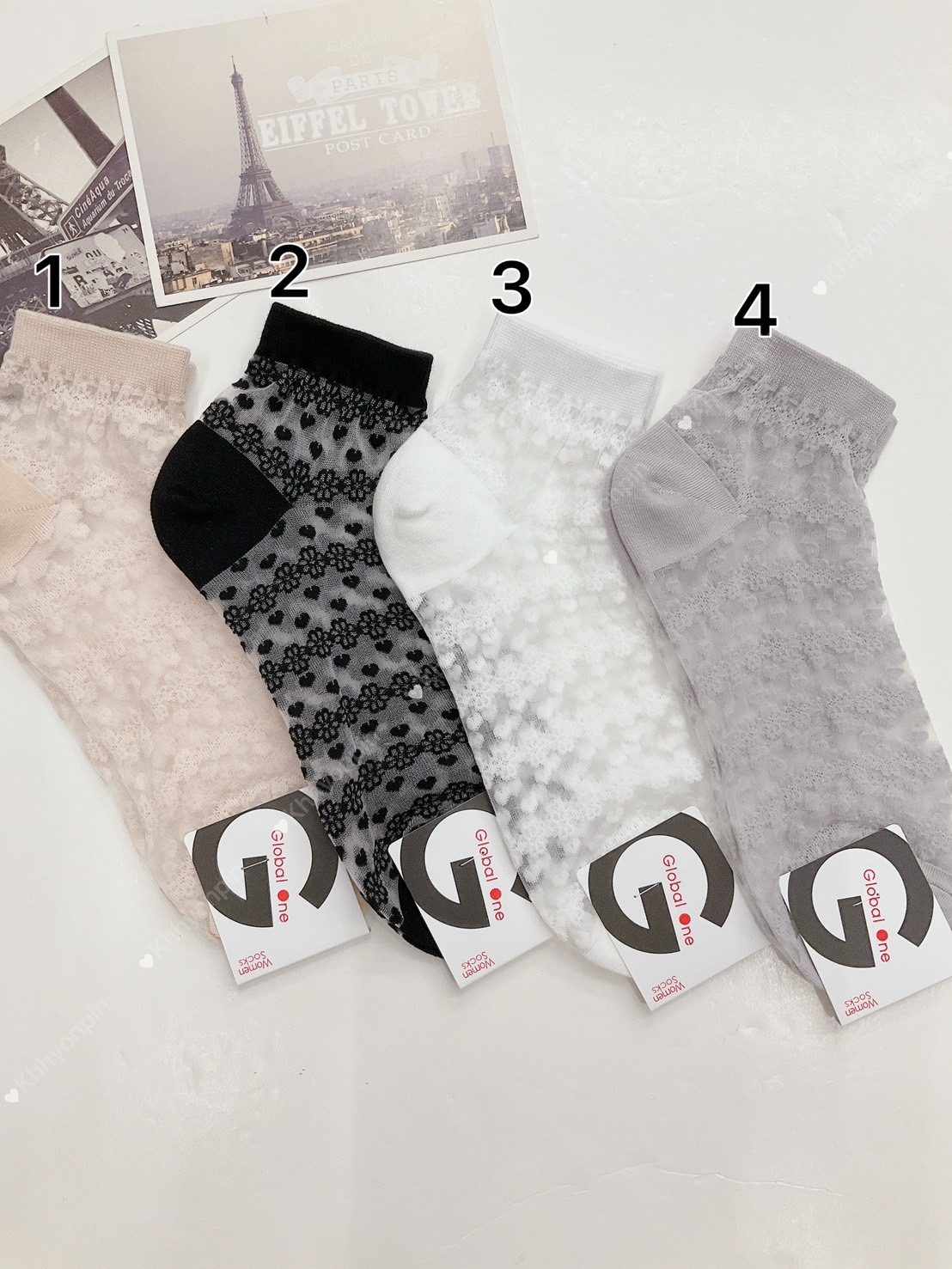 韓國製造~透膚排列愛心 花瓣 短襪