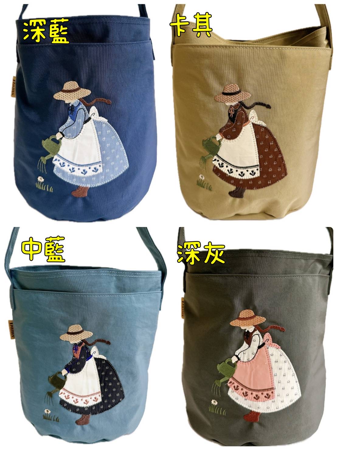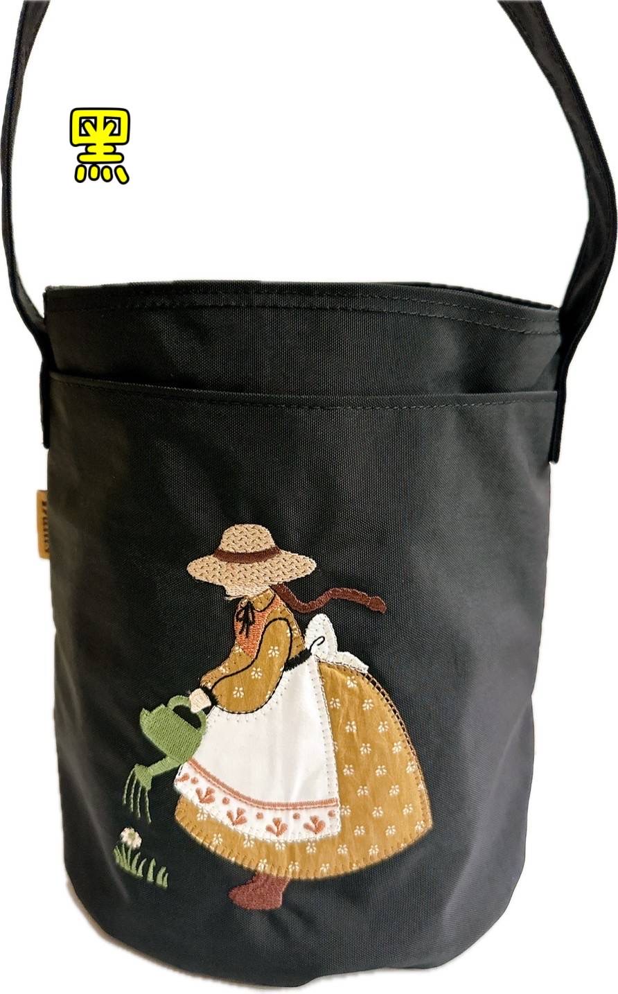 繡圖女孩圓手提