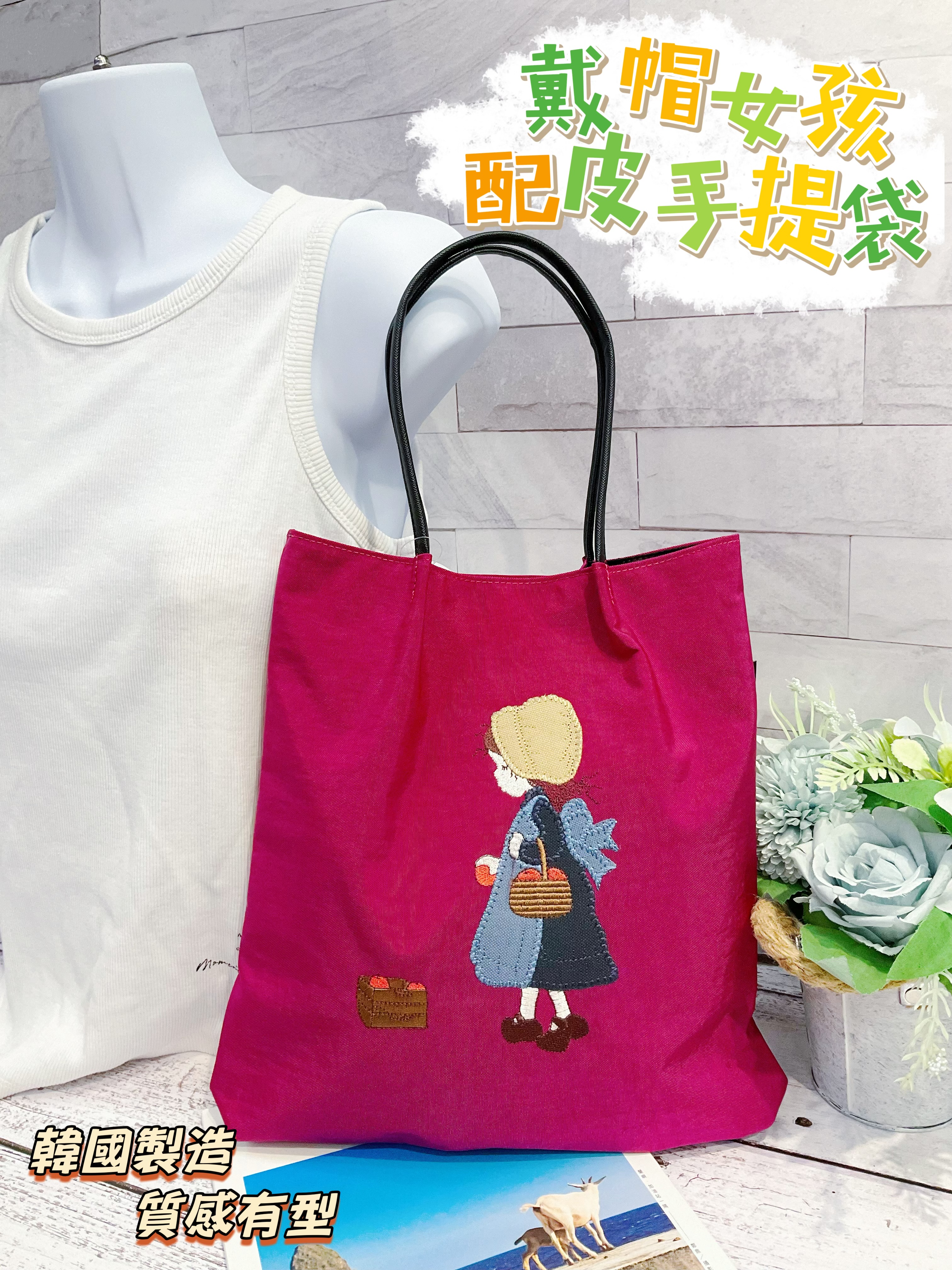戴帽女孩配皮手提袋