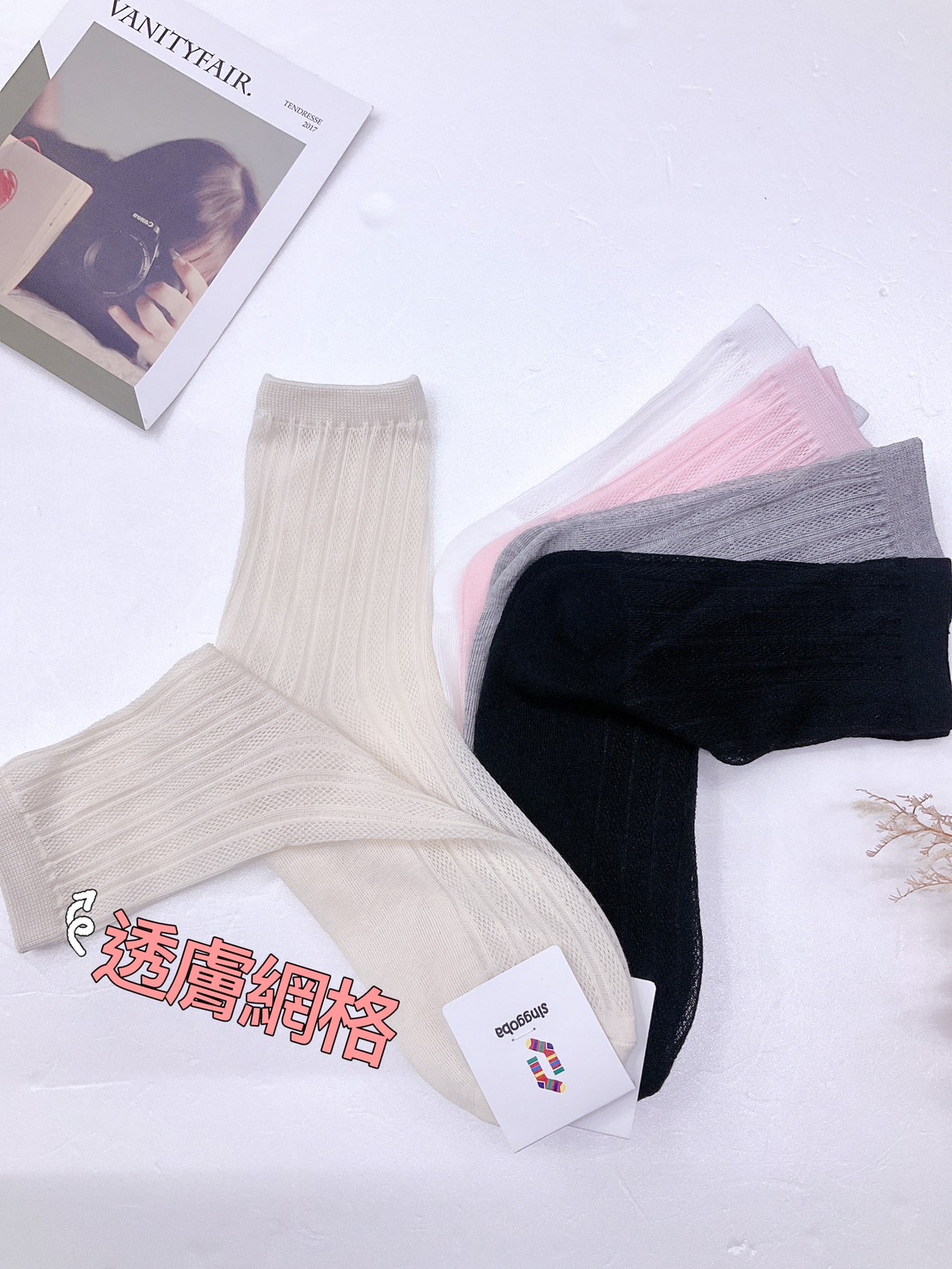 韓國製造~薄款軟網格單蝴蝶結 二分之一襪