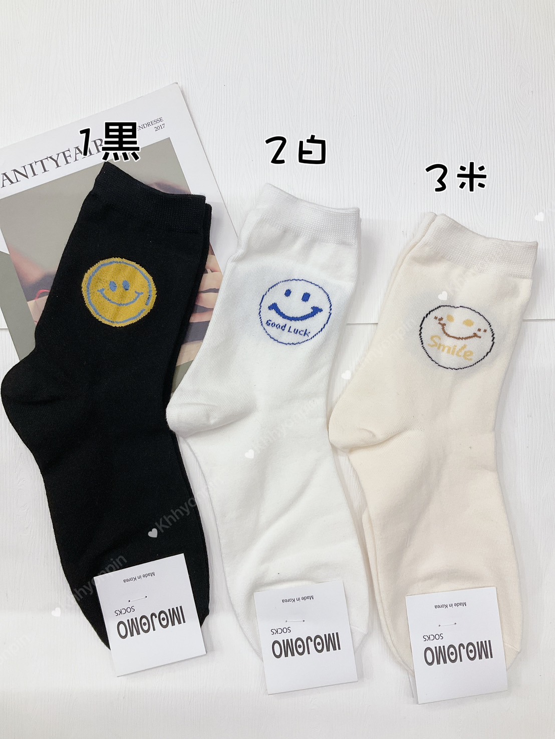 韓國製造~圓牌笑臉 二分之一襪