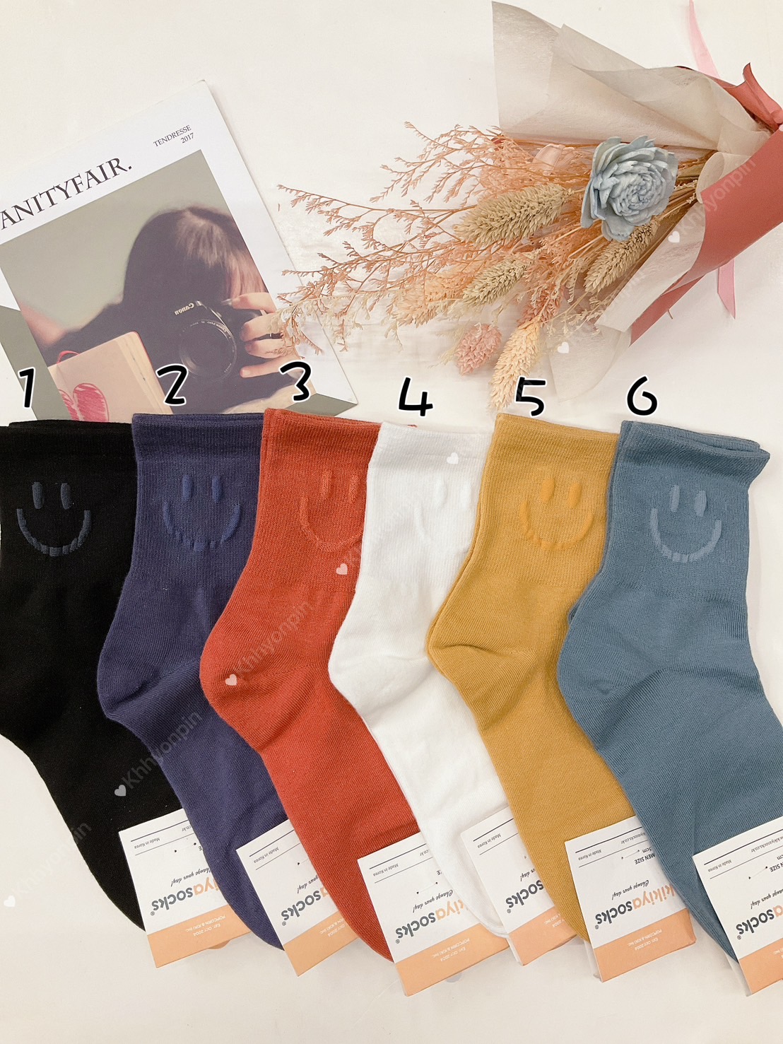 韓國製造~彩虹條紋笑臉 二分之一襪