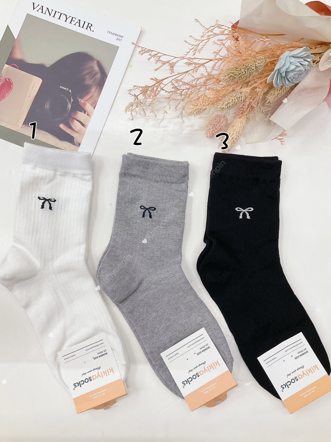 韓國製造~禮物蝴蝶結 二分之一襪