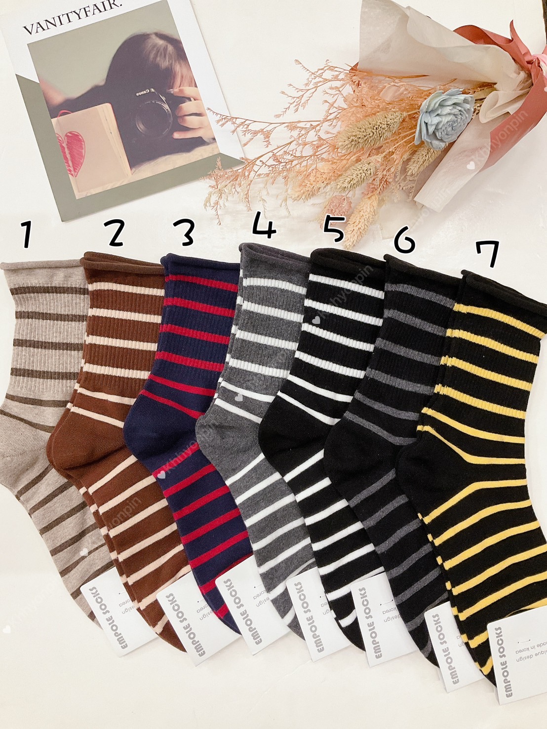 韓國製造~條紋不束腳捲邊 二分之一襪