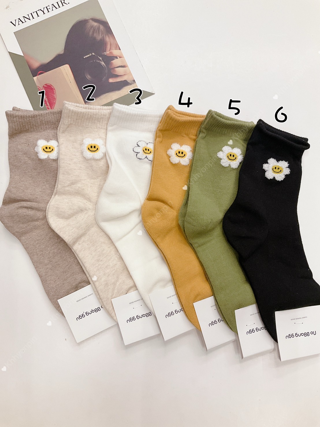 韓國製造~彩虹條紋笑臉 二分之一襪