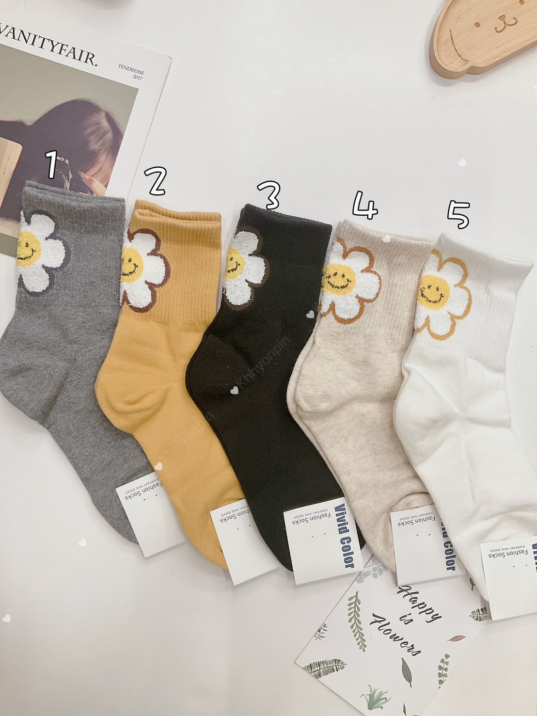 韓國製造~後跟太陽花笑臉 二分之一襪