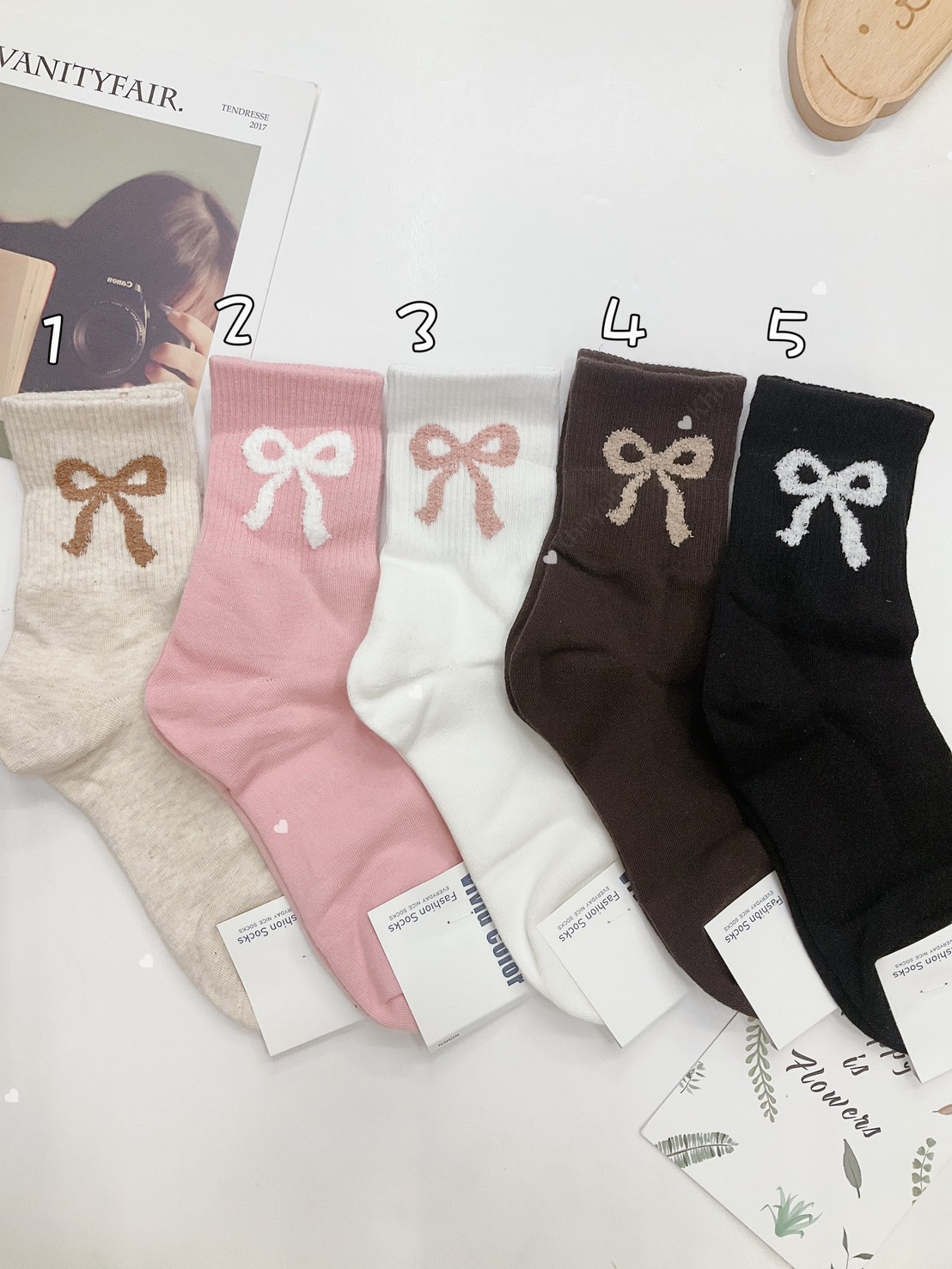 韓國製造~紋彩蝴蝶結 二分之一襪