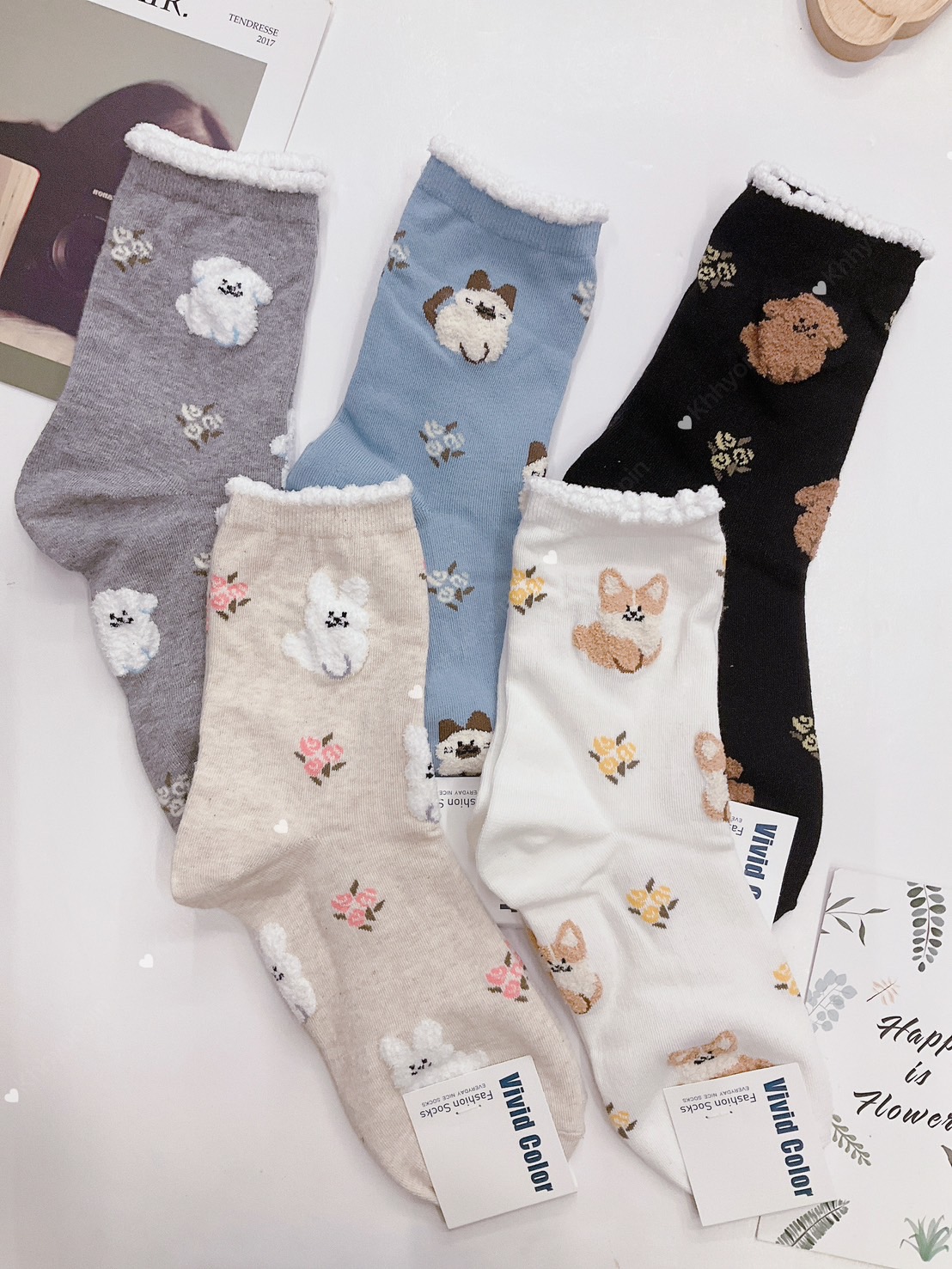 韓國製造~小毛邊滿版動物 二分之一襪