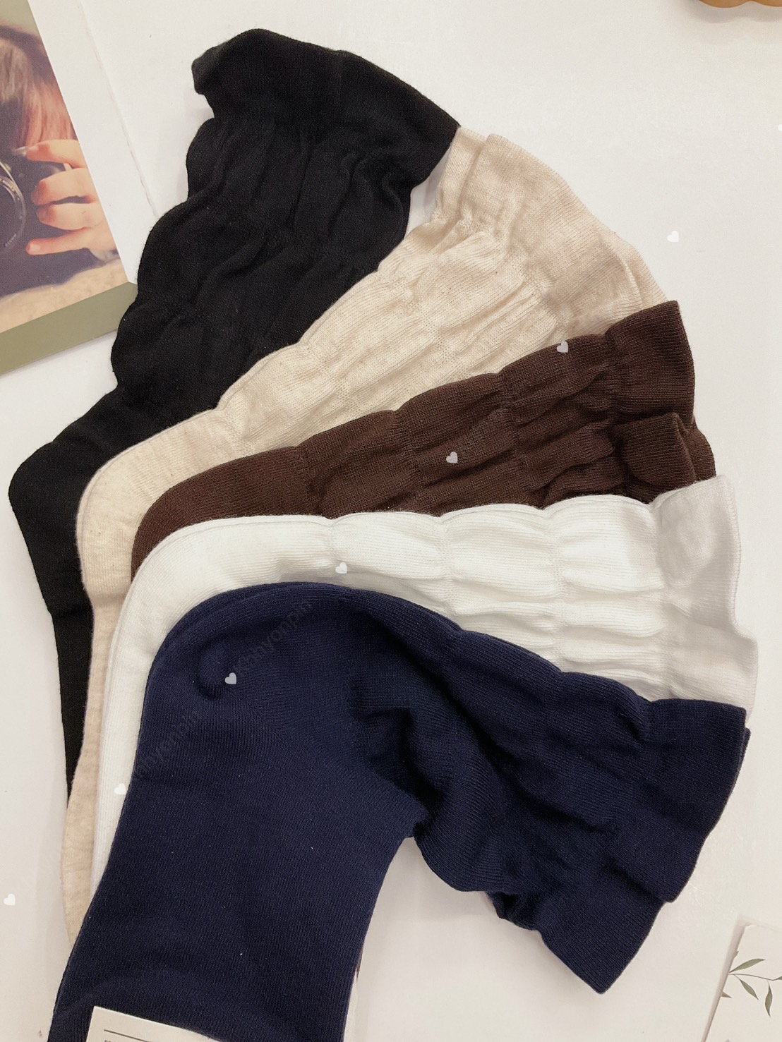 韓國製造~造型裙邊皺摺不束腳 二分之一襪