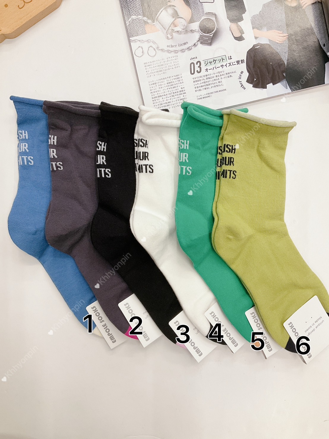 韓國製造~螢光捲邊後腳踝英文字 二分之一襪