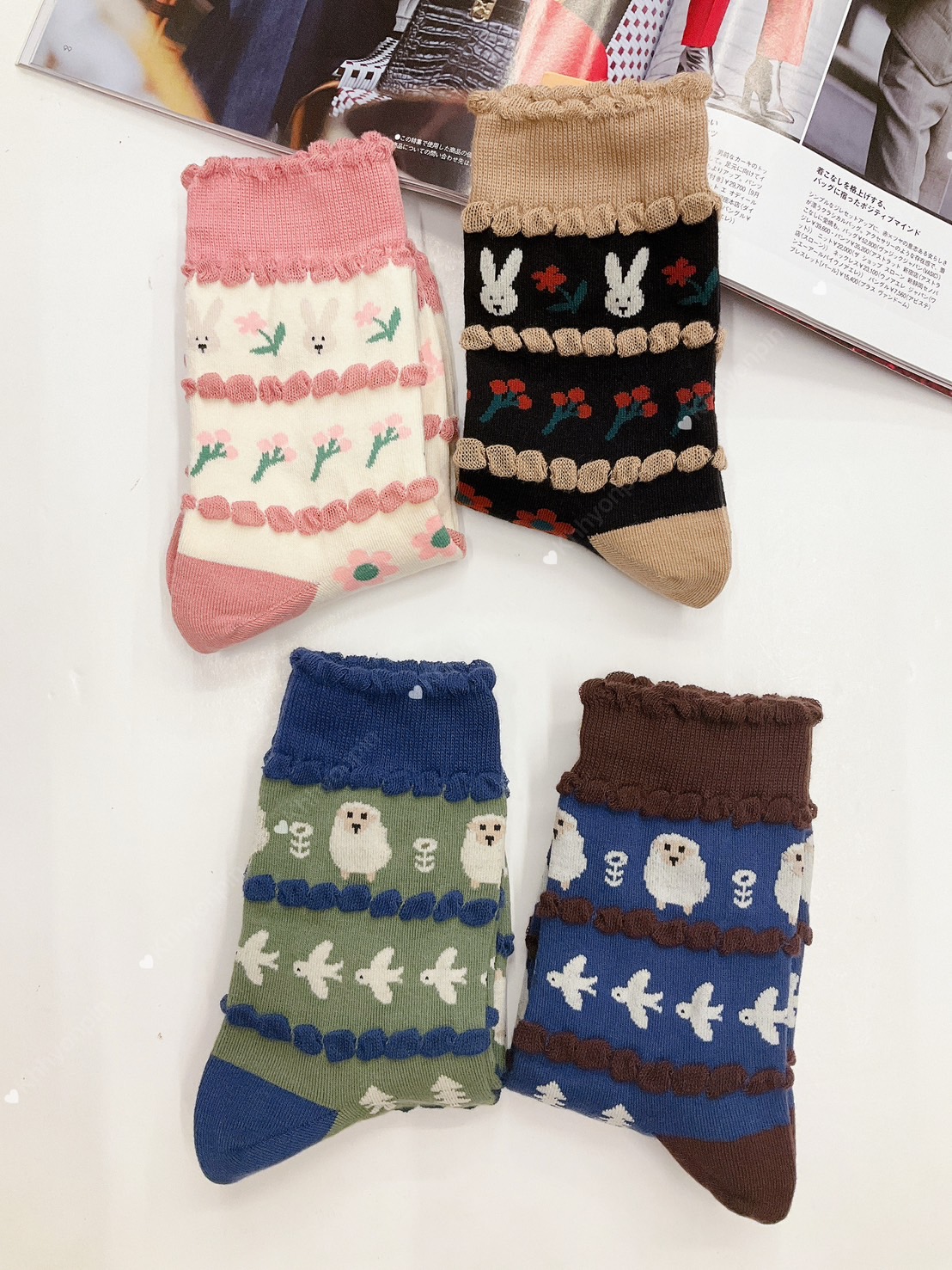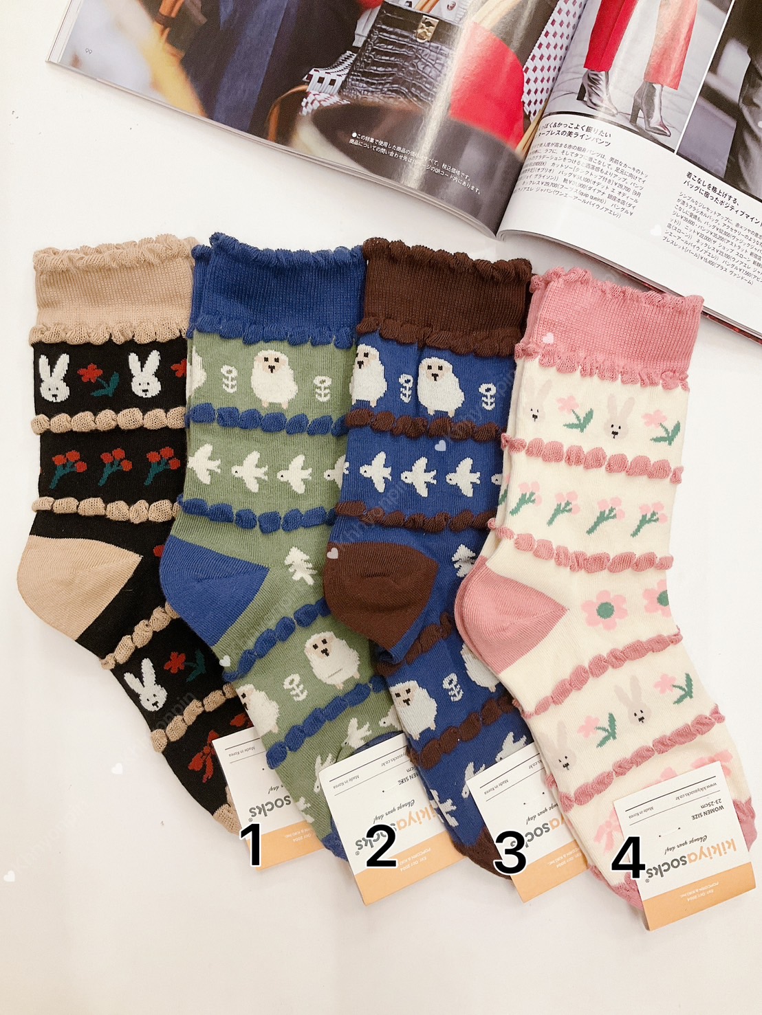 韓國製造~襪口蝴蝶結動物頭 二分之一襪